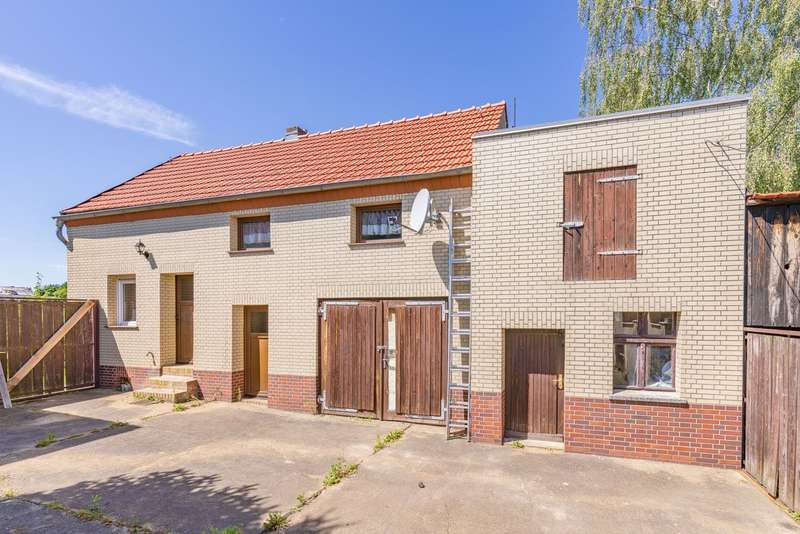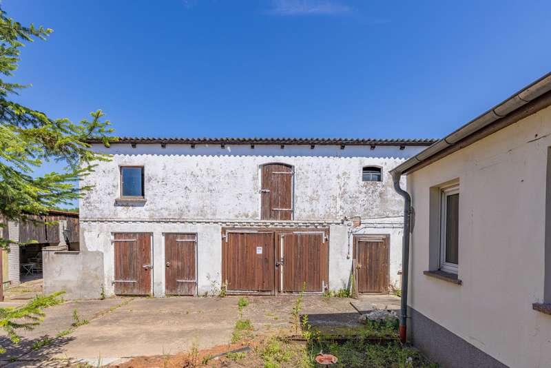 1 ) Semi-detached house with 2 rooms 1 kitchen and a bathroom Living room approx. ( 24,45m² ) Bedroom approx. ( 13,60m² ) hallway approx. ( 11,20m² ) Kitchen approx. ( 7,55m² ) Bathroom approx. ( 5,95m² ) 2) Residential building with 3 rooms, kitchen and bathroom and cellar ( the tower gutted ) Entrance bay approx.( 4,75m² ) GROUND FLOOR Living room approx. ( 19,05m² ) Kitchen approx. ( 8,30m² ) Hallway approx. ( 6,3m² ) UPPER FLOOR Bedroom approx. ( 19,05m² ) Children's room approx. ( 8,40m² ) 3) Outbuilding with 2 rooms and a shower room and a workshop 4) Barn approx. 140m² usable area