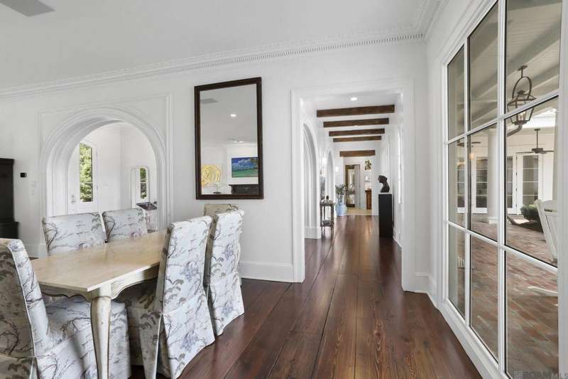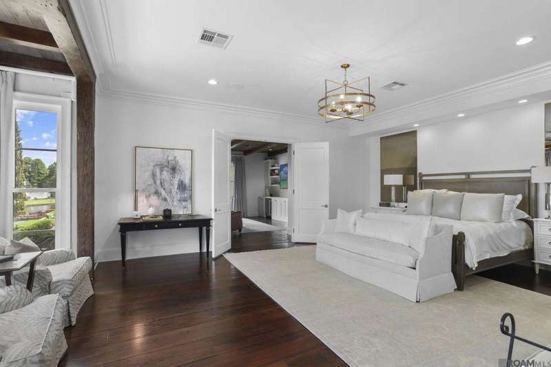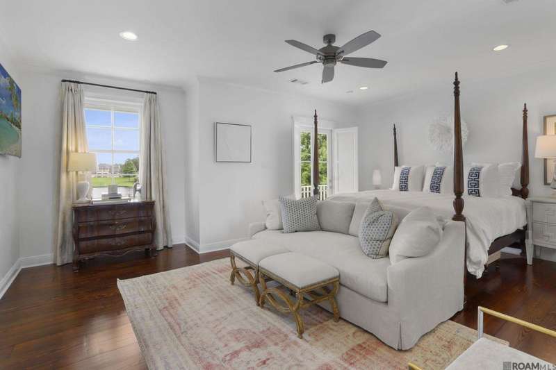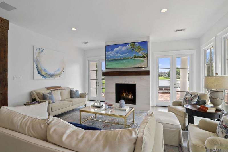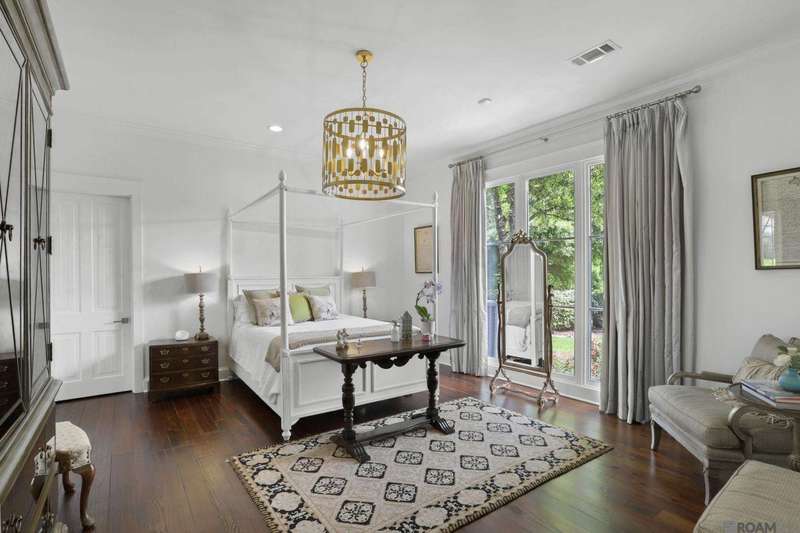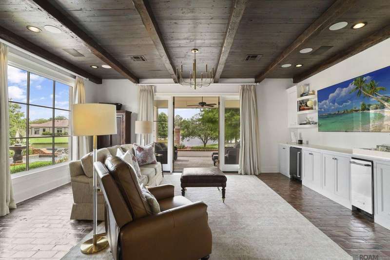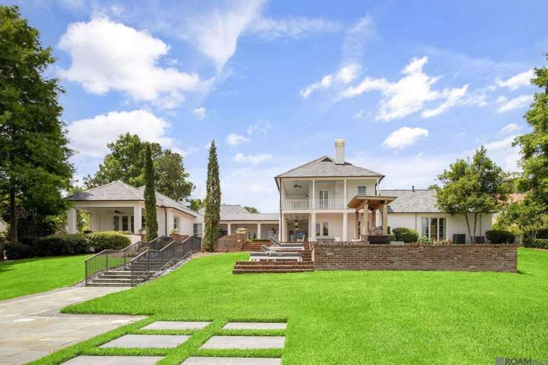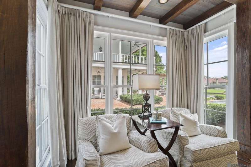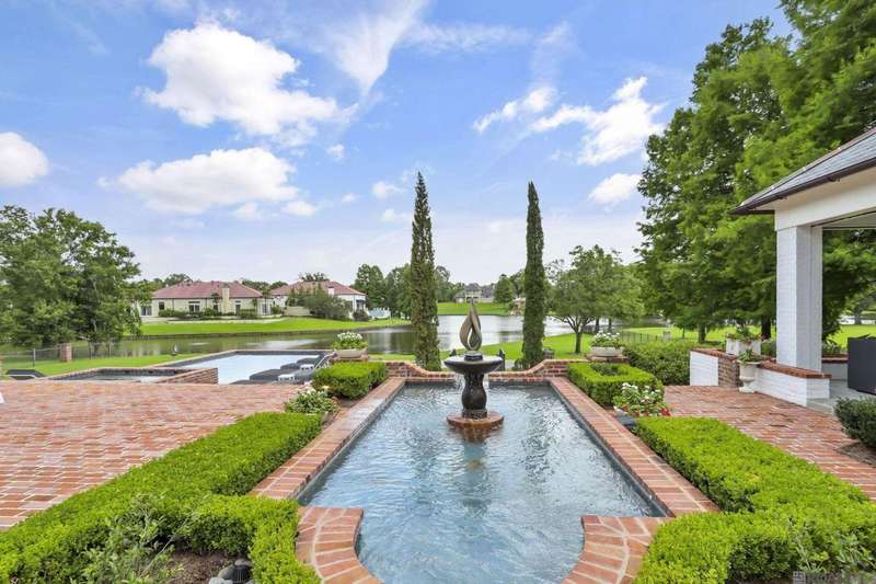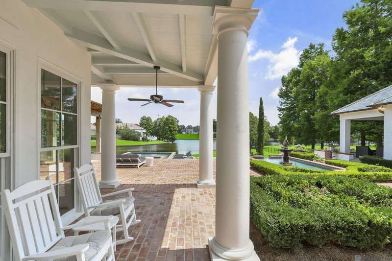 A rare gem in the prestigious Estate Parcel 18 of The Country Club of Louisiana! This fully renovated West Indies-style home offers stunning lake views from most rooms and is filled with natural light throughout. Thoughtfully updated with today's most elegant finishes?neutral tones, natural stone surfaces, designer light fixtures, and custom draperies?it's completely move-in ready. Wide-planked antique pine floors, dramatic arched openings, and the back loggia with a full wall of windows capturing the lake. The expansive kitchen and keeping room feature top-tier updates and adjoin a beautifully crafted walk-in antique bar. The state-of-the-art wine cellar is a true showstopper! Designed for privacy and function, the home offers a primary suite downstairs, with its own office/den accessible thru double pocket doors with its own private porch with retractable screens, great lake views, and separate private access. On the opposite side of the house (near a side entrance) is an additional 16 x 18 bedroom with a large walk-in closet, en-suite bath that has a wheelchair accessible shower, and to cap it off incredible lake views from the large windows! Upstairs you'll find three bedrooms, two bonus rooms (including one with a wet bar), and additional flexible space for media or play. Outdoors, relax on deep wraparound porches, enjoy the pool, spa, and fountain, or entertain in the covered outdoor kitchen surrounded by manicured brick walkways. The lakefront setting is truly breathtaking. Additional highlights include: 3-car garage, 6 guest parking spaces, electric gated drive, whole-house generator, Control 4 system, and professional landscaping
