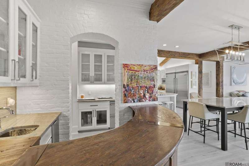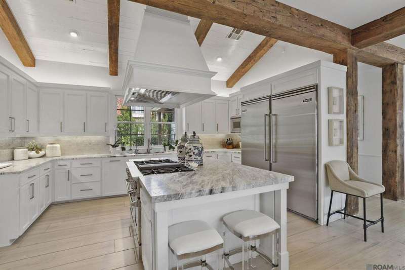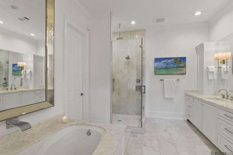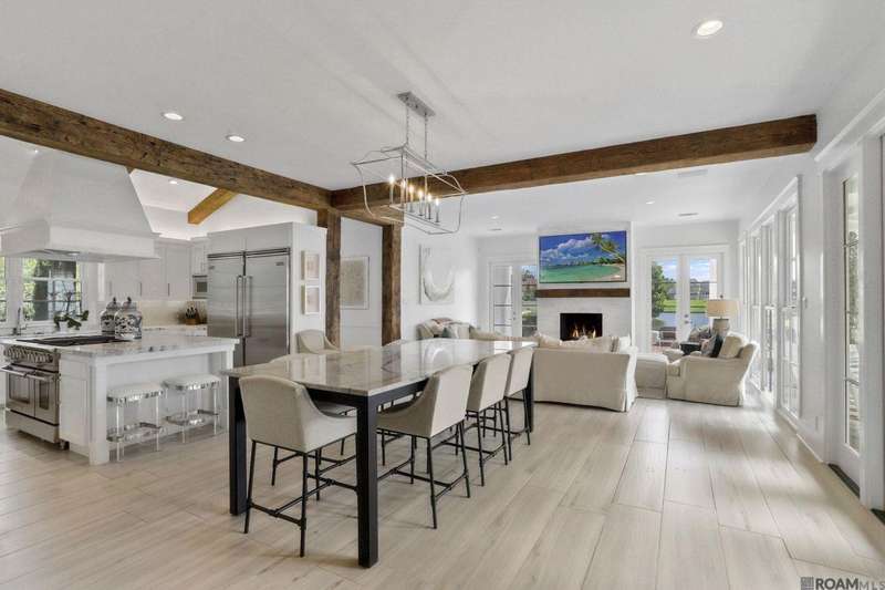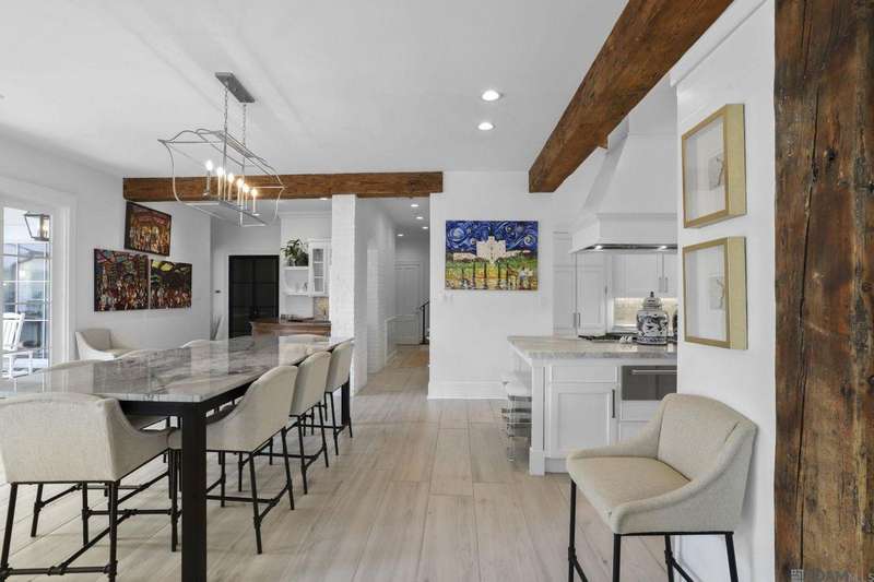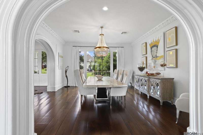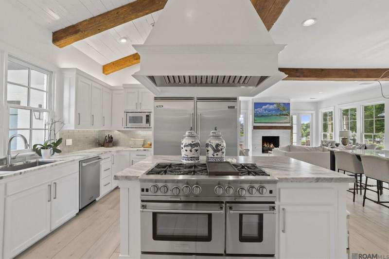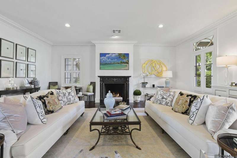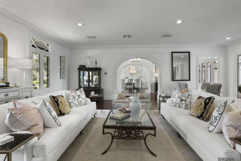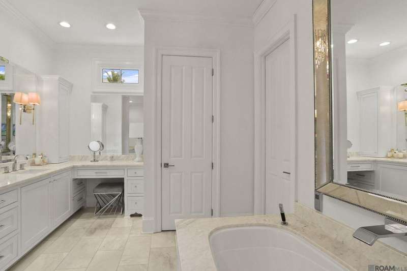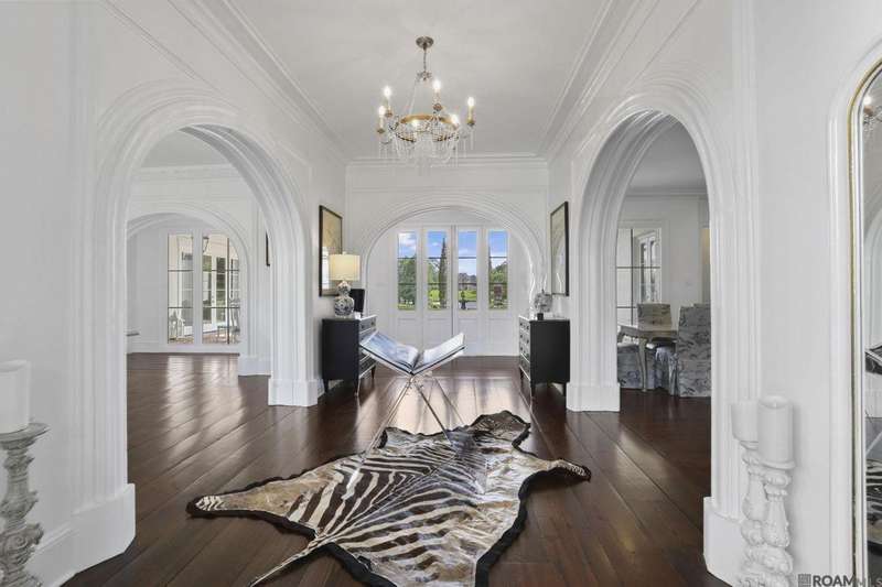 A rare gem in the prestigious Estate Parcel 18 of The Country Club of Louisiana! This fully renovated West Indies-style home offers stunning lake views from most rooms and is filled with natural light throughout. Thoughtfully updated with today's most elegant finishes?neutral tones, natural stone surfaces, designer light fixtures, and custom draperies?it's completely move-in ready. Wide-planked antique pine floors, dramatic arched openings, and the back loggia with a full wall of windows capturing the lake. The expansive kitchen and keeping room feature top-tier updates and adjoin a beautifully crafted walk-in antique bar. The state-of-the-art wine cellar is a true showstopper! Designed for privacy and function, the home offers a primary suite downstairs, with its own office/den accessible thru double pocket doors with its own private porch with retractable screens, great lake views, and separate private access. On the opposite side of the house (near a side entrance) is an additional 16 x 18 bedroom with a large walk-in closet, en-suite bath that has a wheelchair accessible shower, and to cap it off incredible lake views from the large windows! Upstairs you'll find three bedrooms, two bonus rooms (including one with a wet bar), and additional flexible space for media or play. Outdoors, relax on deep wraparound porches, enjoy the pool, spa, and fountain, or entertain in the covered outdoor kitchen surrounded by manicured brick walkways. The lakefront setting is truly breathtaking. Additional highlights include: 3-car garage, 6 guest parking spaces, electric gated drive, whole-house generator, Control 4 system, and professional landscaping
