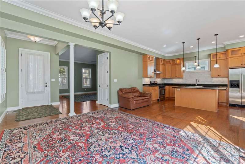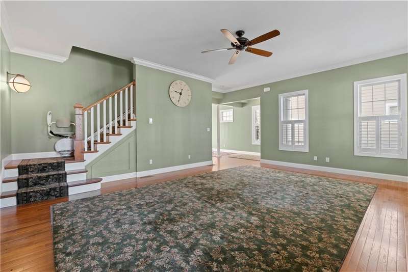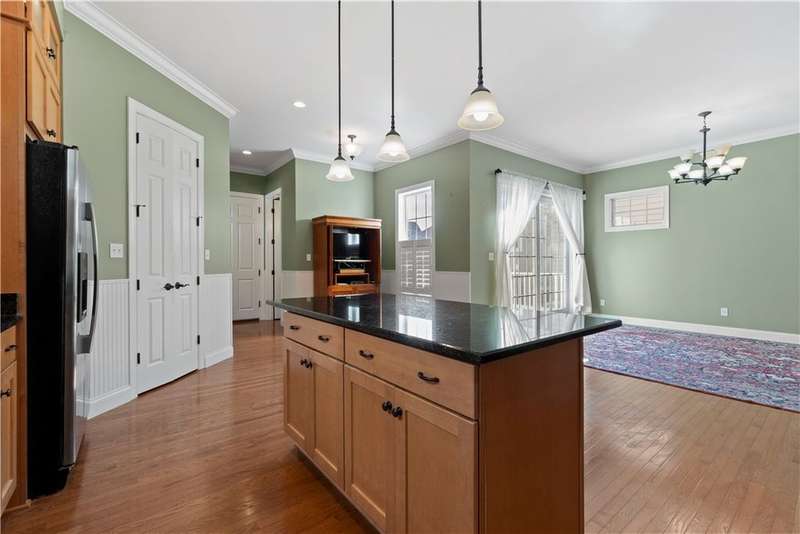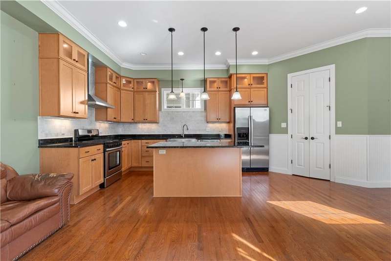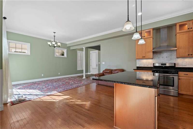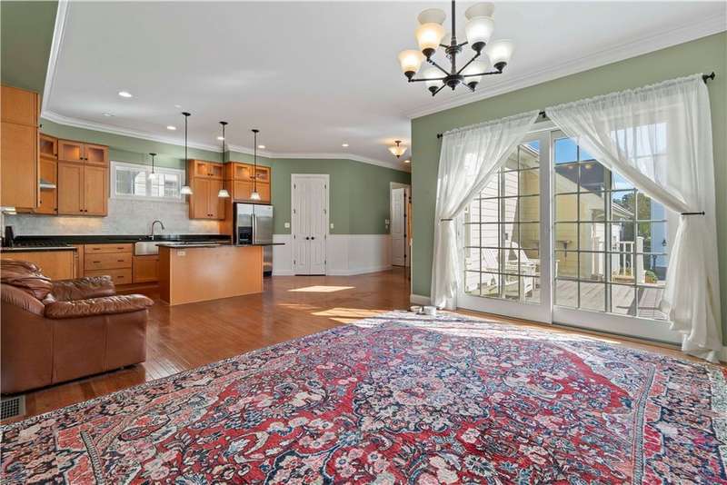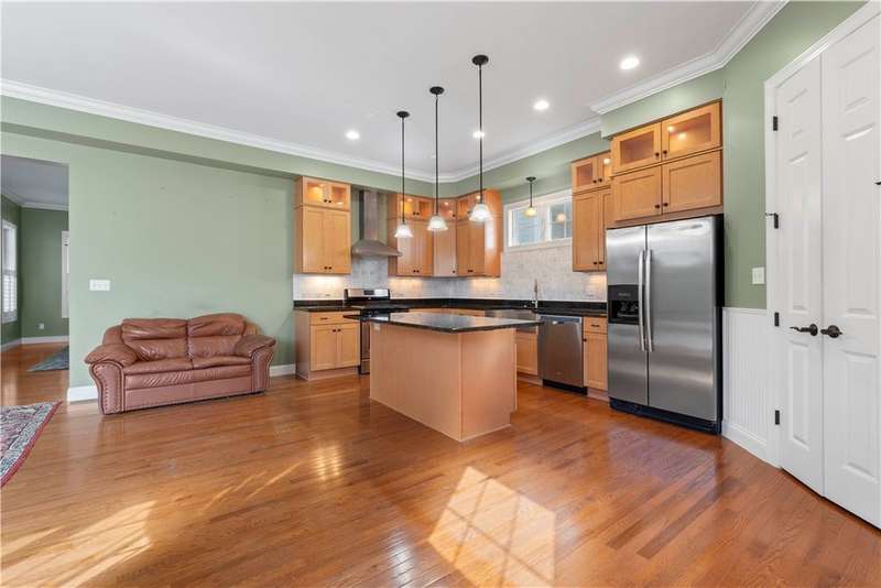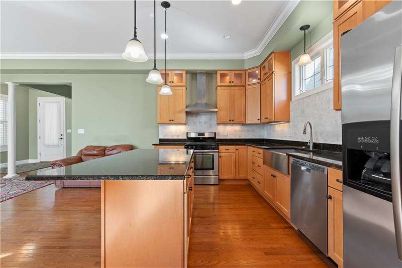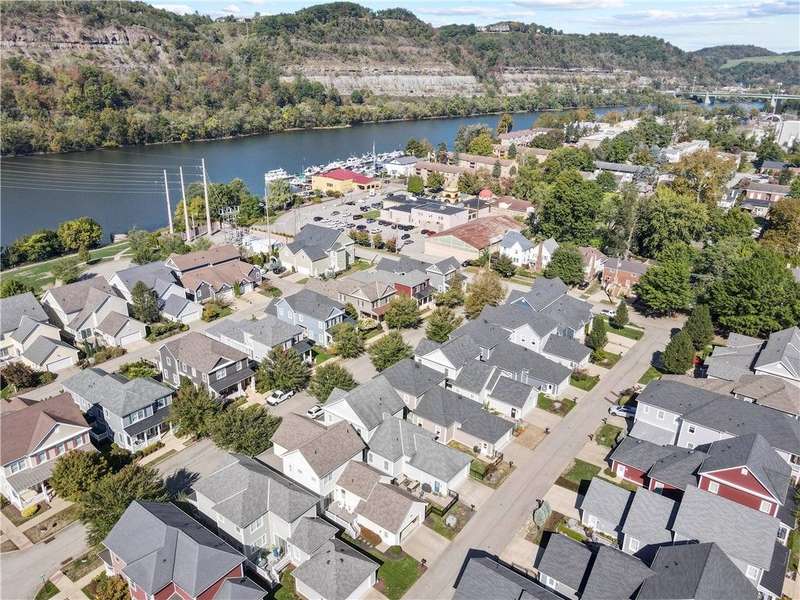 Edgewater of Oakmont Kacin Built three bedroom Cottage Home. A covered front porch welcomes you into an elegant home with hardwood flooring throughout. The spacious 1st floor includes a large living room and an open kitchen/great room which can be a family room/ dining room, and office area. The well designed kitchen offers abundant cabinets and granite topped counter space with a large island, a large pantry closet and is fully equipped with high end stainless steel appliances all open to flexible space, making it ideal for entertaining. From the attached garage find an equipped laundry room & convenient powder room. A side porch opens to the beautifully landscaped lot on a prime Edgewater street, steps from the river walk. The 2nd floor Primary Bedroom will thrill you with a massive walk in closet and a spa inspired bath. Two guest bedrooms & full bath complete the 2nd level. Excellent closet space and good storage. Garage has built in storage shelves and crawl space entry.