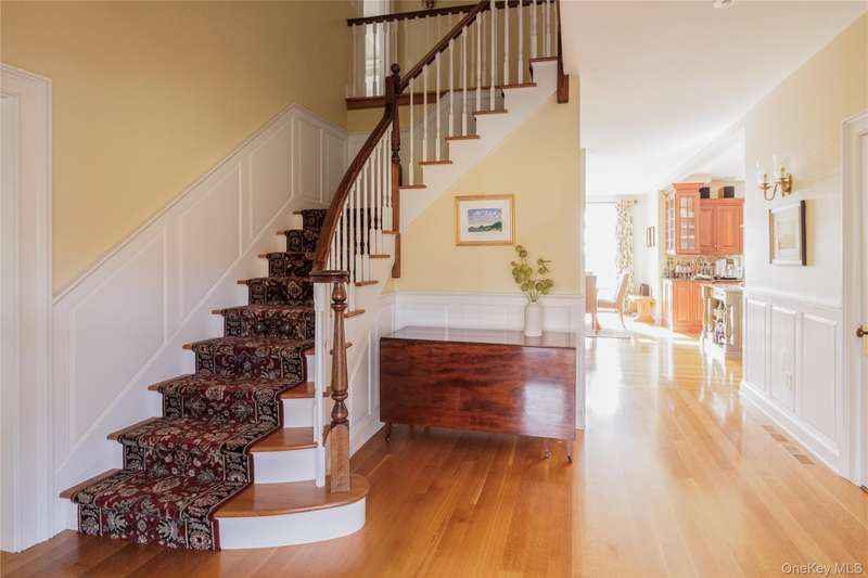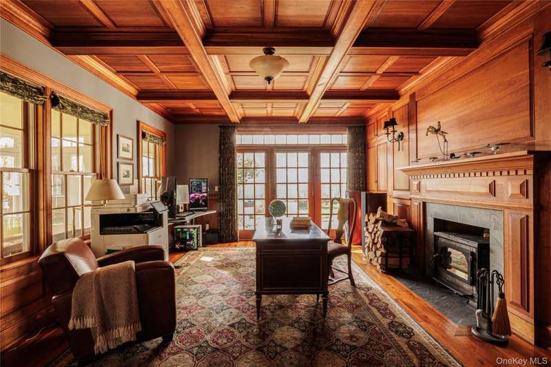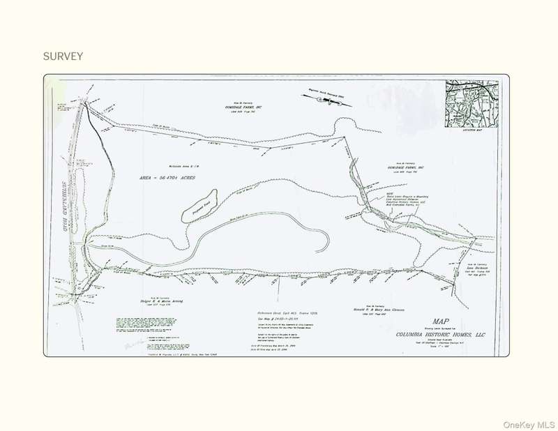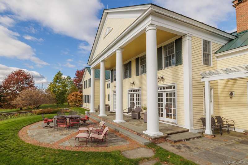 Welcome to Notre Colline Estate, a private country compound set on more than 56 acres of rolling meadows, gardens, ponds, and Catskill Mountain views. French for Our Hill, Notre Colline has an easy sense of belonging to its landscape. A long paved drive leads to this elegantly designed 5,760-square-foot home, inspired by classic Greek Revival architecture. Built in 2005 for comfort, entertaining, and longevity, it features a standing-seam metal roof, radiant heated floors, energy-efficient heat pumps, and a fully integrated smart home system that manages lighting, temperature, security, video, and sound.The main level opens to bright, connected gathering spaces centered around a modern chefs kitchen with a large custom island, a counter depth panelized fridge, and professional-grade appliances. French doors from the dining area and breakfast nook open to a wide stone patio with an outdoor kitchen framed by landscaped gardens and open lawns, creating an easy indoor-outdoor flow. A paneled cherry wood office with built-in cabinetry and a wood-burning stove offers a quiet workspace beside a three-season sunroom, and a spacious living room with a gas fireplace invites relaxed evenings with friends and family.Upstairs, the grand primary suite feels like a private retreat, complete with a gas fireplace, two walk-in closets, and a luxurious bath with soaking tub and steam shower. Three additional bedrooms, a guest living room, two full bathrooms, and a laundry room complete the second floor. The finished lower level adds generous additional living space with a recreation room, billiards area, kitchenette, sauna, and full bath, ideal for guests or wellness use. An attached three-car heated garage features a porcelain tile floor and plenty of space for storage.Outdoors, a peaceful aerated pond lies at the center of the property, crossed by a charming footbridge and bordered by open lawns and walking paths. The grounds also include fenced in raised-bed gardens with irrigation, a potting shed, and a newly constructed insulated 26x34 foot outbuilding with water, electric, and space for six or more vehicles. Every detail has been considered for efficiency and ease, from spray-foam insulation and upgraded hydronic systems to improved drainage and a generator. Located minutes from Chatham village, Notre Colline Estate offers refined country living in beautiful Columbia County.