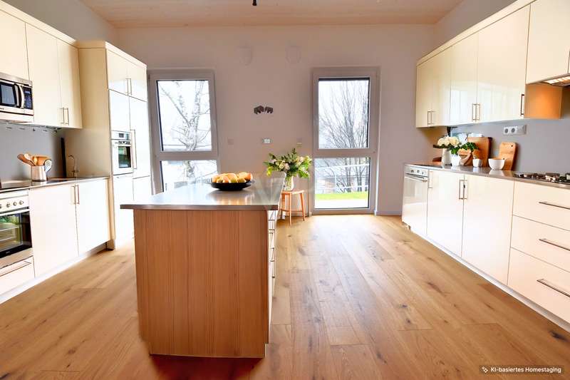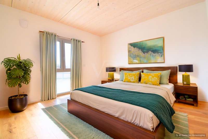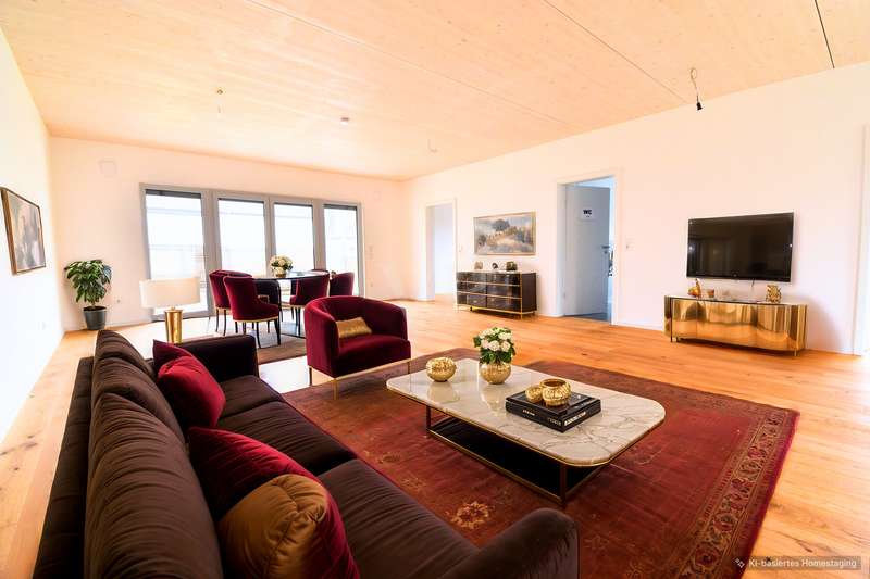 This modern condominium with an area of around 102.25 m² and 3.5 rooms is located on the first floor of a 3-storey KfW 40+ timber building and combines first-class living comfort with pioneering sustainability. The building was constructed using an innovative timber construction method, which not only ensures excellent energy efficiency, but also enables a particularly environmentally friendly construction method. The use of high-quality materials reduces energy consumption to a minimum, which significantly lowers operating costs while helping to protect the environment. The apartment is flooded with natural light, creating a pleasant and bright atmosphere in every room. The efficient underfloor heating ensures that the spacious living area offers an optimal feel-good climate at any time of year. The modern plastic windows are superbly insulated and contribute to the excellent thermal insulation, making the apartment particularly energy-efficient. A particular highlight of the apartment is the high-quality bathroom with a floor-level shower, which offers maximum comfort and is ideal for senior citizens or people with limited mobility. Barrier-free access to the apartment is ensured by an elevator that conveniently connects all floors of the building. In addition, the apartment has a spacious terrace that offers plenty of room for relaxing hours outdoors. The adjoining garden is ideal for cultivating your passion for gardening or growing your own fruit and vegetables while enjoying nature and the beautiful weather. Another plus are the electric shutters, which provide additional comfort and security in all rooms. They can be easily controlled at the touch of a button, allowing you to adjust the amount of light and thermal insulation to suit your needs. The apartment also impresses with solid wood ceilings made from natural materials, which ensure a particularly high quality of living. The wood not only contributes to a cozy atmosphere, but also regulates the indoor climate in a natural way. Another advantage is the communal photovoltaic system, which enables residents to use the electricity they generate themselves directly, significantly reducing energy costs. The apartment comes with a parking space and a practical bicycle box that offers secure storage space. The building meets the latest KfW-40+ timber construction standards, which contributes to low heating costs and a positive ecological balance. Tax advantage: Buyers also benefit from a special depreciation allowance of 5%, which provides attractive tax relief and makes the investment even more profitable. The location boasts excellent connections to public transport, shopping facilities and other important infrastructural amenities, making it particularly attractive for commuters and city dwellers. To summarize: This apartment not only offers first-class living quality, but also long-term benefits such as low operating costs and an investment that retains its value. It is an ideal home for those who value comfort and sustainability - a worthwhile opportunity for both owner-occupiers and investors.