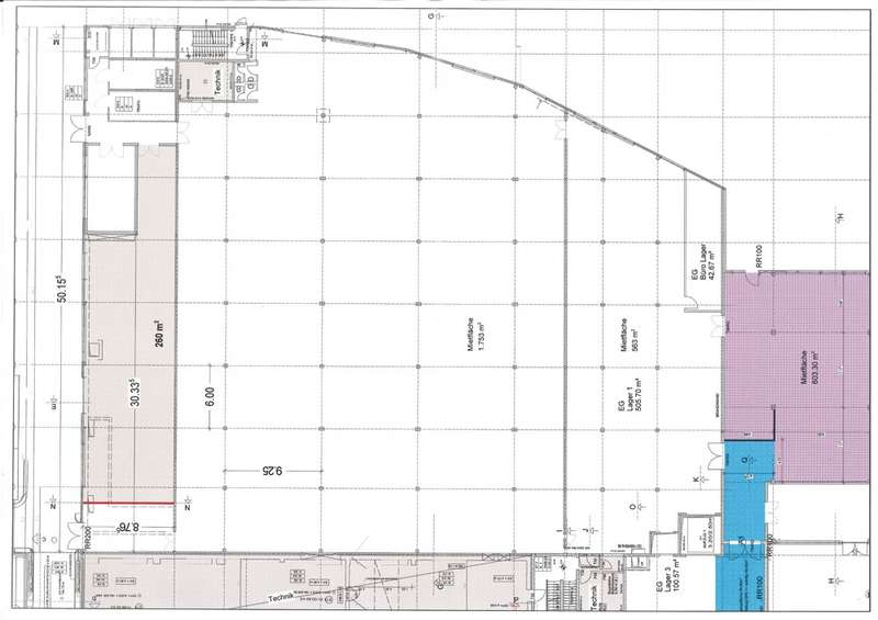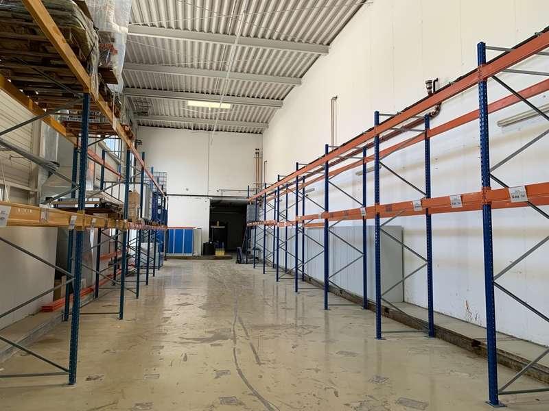 In addition to large-scale storage and production areas, smaller storage units from around 300 m² to 1,700 m² are also available for rent within a small enclosed business park. Smaller warehouses can be partitioned by means of mesh fencing. Access is via a ground-level door (double-leaf). Driveways and communal paths are set up within the area. Parking spaces are available in front of the building. The site is accessed via two sliding gates. The site is fenced and locked. The rental price for the production and storage areas is € 4.50/m² plus ancillary costs and statutory VAT.