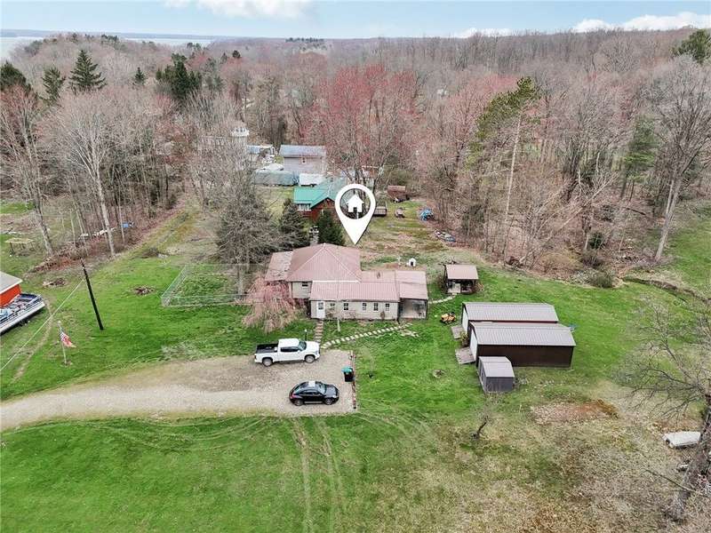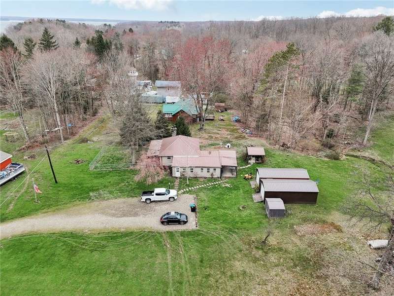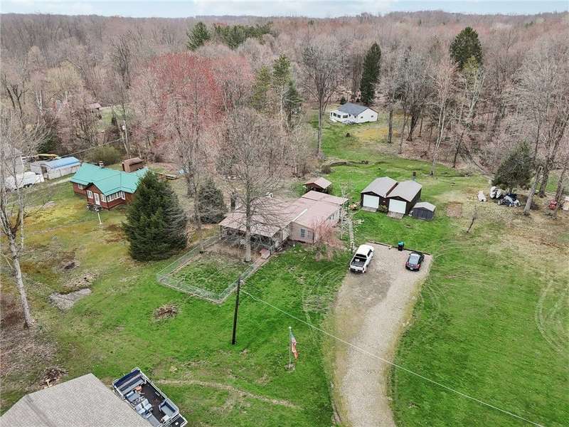 PYMATUNING LAKE AREA. WONDERFULL LOCATION. SITS BACK OFF THE ROAD, SECLUDED QUIET SETTING. HARD WOOD FLOORS, NEWER KITCHEN, CERAMIC TILE FLOOR, UP DATED LIVING RM FIREPLACE LOOKS FANTASTIC. FINISHED BASEMENT, CERAMIC TILE FLOOR W/BATH. NEWER HOT WATER HEATER (2015). 15X13 FLORIDA RM, NEWER METAL ROOF, TWO GARAGES WITH ELECTRIC.RELAXING FRT PORCH PLUS FENCED IN AREA SUPER PET FRIENDLY-200 AMP ELECTRICAL THERE IS A PRIVATE ROAD THAT GETS VERY LITTLE USE. So many extras and care given in this home it must be viewed