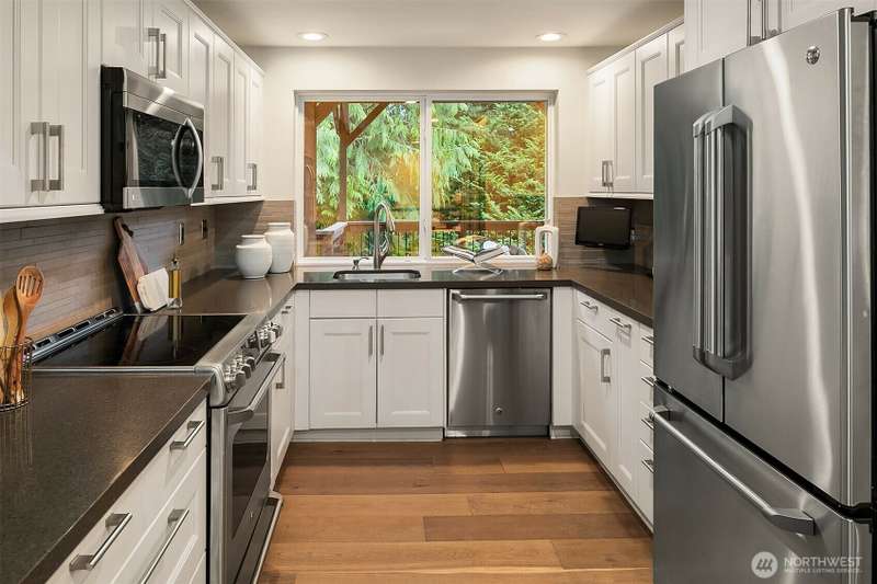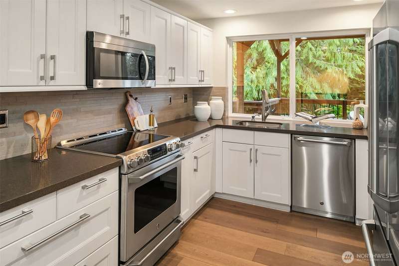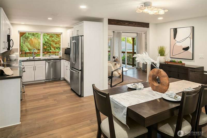 Discover the Kirkland Kingsgate Jewel, a captivating 5-bedroom, 3-bath residence boasting 3,010 sq ft of generous living space on a substantial lot. Ideally situated in the sought-after Northshore School District, this home is conveniently located minutes from the Village at Totem Lake & Evergreen Medical Center, with easy access for commuting. Enjoy the expansive indoor and outdoor areas, featuring a second kitchen, a large deck, and a backyard w/ stunning northwest hardscaping. Benefit from ample storage, a playhouse, a detached third garage, and RV parking. The HOA offers exclusive access to community amenities, including a reservable pool, tennis courts, & nature trails leading to Juanita Creek. Peaceful & ideal for comfortable living!