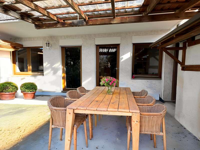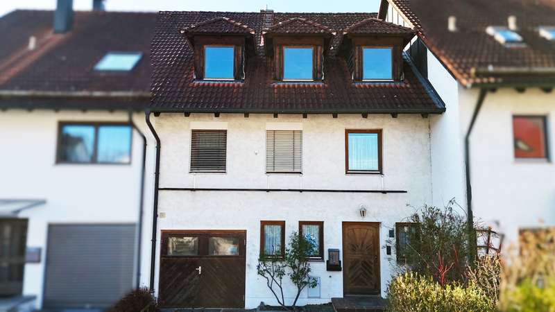 Welcome to your new home! This charming mid-terrace house currently offers approx. 108 m² of living space and the perfect combination of security and design freedom - ideal for families who want to create their own personal feel-good space. As you enter the living room, you are greeted by an open-plan living area with warm wooden floors that create an inviting atmosphere. The adjoining kitchen with dining area invites you to spend evenings cooking together, while the large sliding door opens up the living space as required or creates a cozy atmosphere. A guest WC, a practical storage room and direct access to the garage make the first floor particularly functional. A master bedroom with balcony awaits you on the upper floor. Two children's bedrooms offer plenty of space for playing, learning and dreaming. The bathroom, which has both a bathtub and a shower, rounds off this floor. A special highlight of this property is the generous expansion potential on the top floor! With separate access and already prepared connections, an independent granny apartment of approx. 70 m² can be created here. Thanks to the clear separation from the main living area, this additional living space is ideal for adult children, relatives or for renting out - a perfect combination of flexibility and future security! The outdoor area also leaves nothing to be desired: The west-facing garden offers ample space for gardening or simply relaxing. The spacious terrace is ideal for sociable barbecue evenings, while you can enjoy the sunset on the balcony. The property is used on a leasehold basis, with an annual ground rent of €2,431.92 (as of 2025). The contract runs until 31.12.2058 and offers a reliable basis for your future plans. This house is an ideal opportunity for anyone looking for a cozy home with development potential. Give free rein to your creativity and design this property entirely according to your ideas - your new chapter begins here!