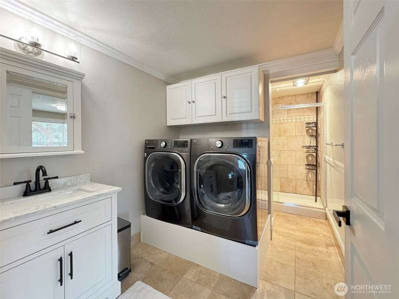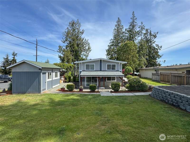 Better than new, 5 bedroom home on an oversized corner lot! This incredibly cared for and completely remodeled home allows you to unlock the door and settle right in. New kitchen and bath cabinetry, appliances, plumbing, lighting, paint and flooring throughout. Updated siding modernizes the home and the new roof, gutters, downspouts and decking make it worry free for years to come! Enjoy the landscaped yard from either of the two decks or the sunny partially covered patio! Plenty of storage can be found in the matching back yard shed plus there's room for all your parking needs with the 2 car parking pad off the alley! Add in views of the Straits and the Mountains and you will be ready to call this one Home!