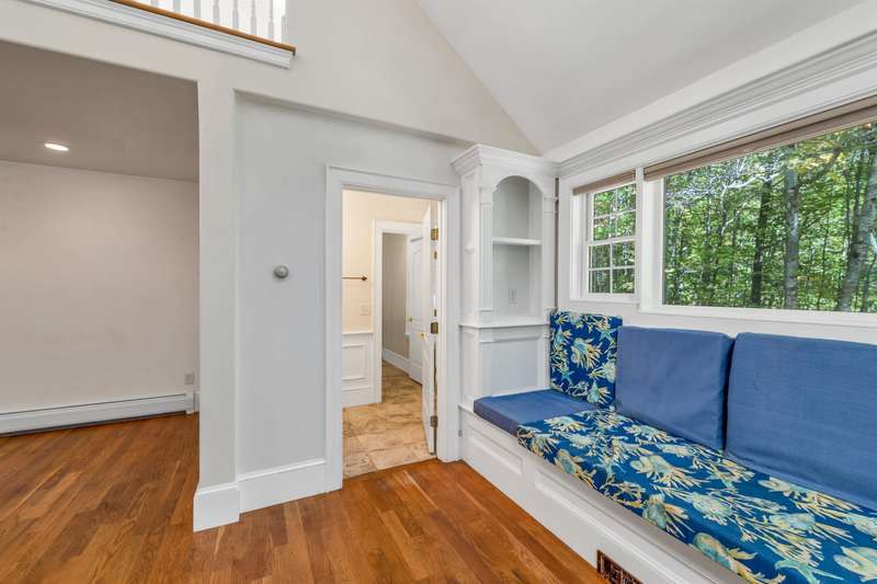 Contemporary Retreat in North Conway. Exceptional Design & Ideal Location. Discover this striking contemporary cape, extensively remodeled with a focus on beauty and wellness. Located below Cathedral Ledge and just a stroll from Echo Lake, it blends modern design with natural surroundings. Step inside and be greeted by a spacious, open concept living area filled with natural light, ideal for both relaxing and entertaining. The vaulted ceiling great room includes a custom-built window seat with a sweeping curved staircase leading to an open bridgeway and full loft. The kitchen features solid cherry cabinets, a spacious island, and a cozy breakfast nook. Enjoy unique built-ins, elegant stairways, and a large loft with gorgeous red oak floors. Retreat to the luxurious 1st floor primary suite, complete with an elegant en-suite bath with a walk-in shower and luxurious soaking tub for your private oasis. 2nd level roomy bedrooms offer wide knotty pine floors. The loft and the cozy gas stove invite family and friends to gather. The detached three-bay with RV ACCESS GARAGE includes a custom apartment with hardwood, ceramic tiles, a full bath, laundry, and a well-equipped kitchen. Outside, natural gardens and paved paths welcome you home. An on-demand whole house generator, mini-split air conditioning, hot tub, and patioed firepit complete this one-of-a-kind living experience! This stunning property is perfect as your primary, vacation, or invesment home.