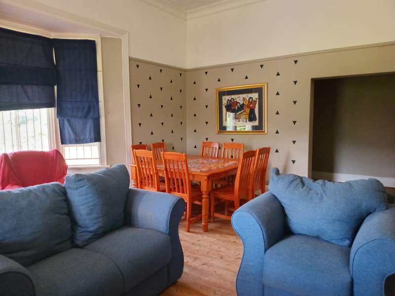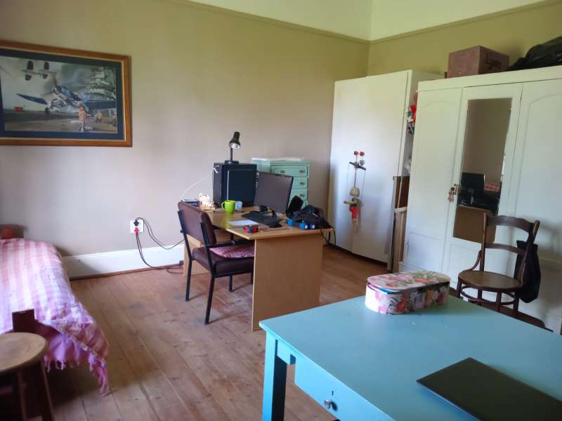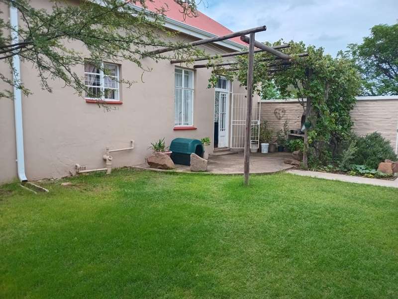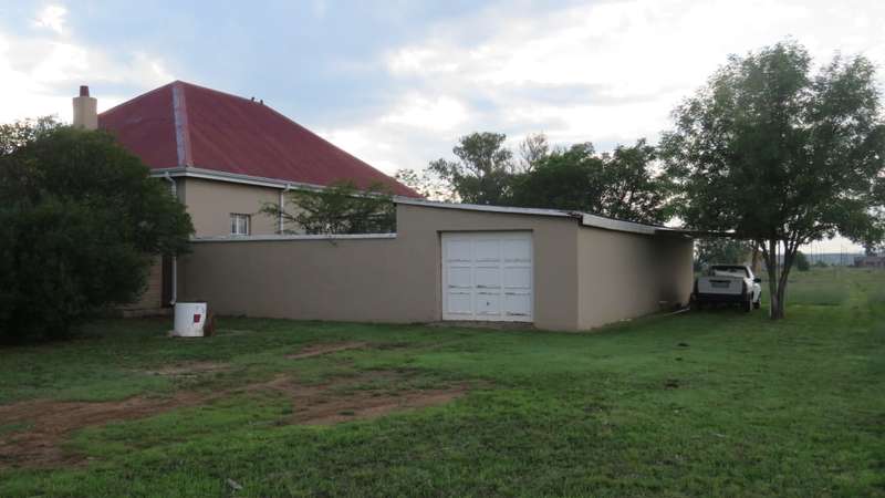 At the edge of town you'll find this neat as a pin house creating the ultimate farm feel right in the middle of over 8000sqm of land. Fulfilling all your needs with spacious rooms and high ceilings. Wooden floors throughout except for bathrooms and kitchen. 3 bedrooms, 2 bathrooms of which 1 is ensuite. Spacious living area with kitchen. Courtyard with braaiarea bursting with potential. Garage outside building and carport. Come live on the farm in town. 2× 10 000l water tanks for water interruptions.