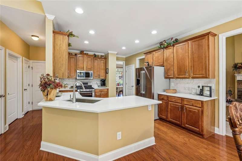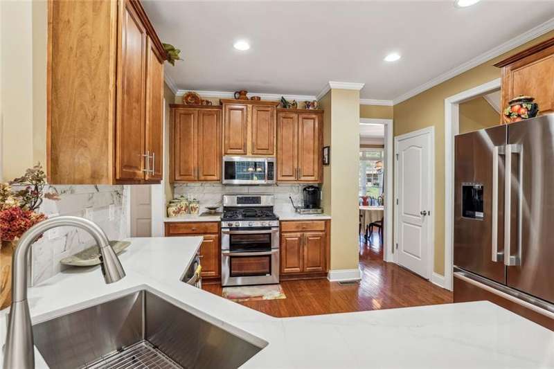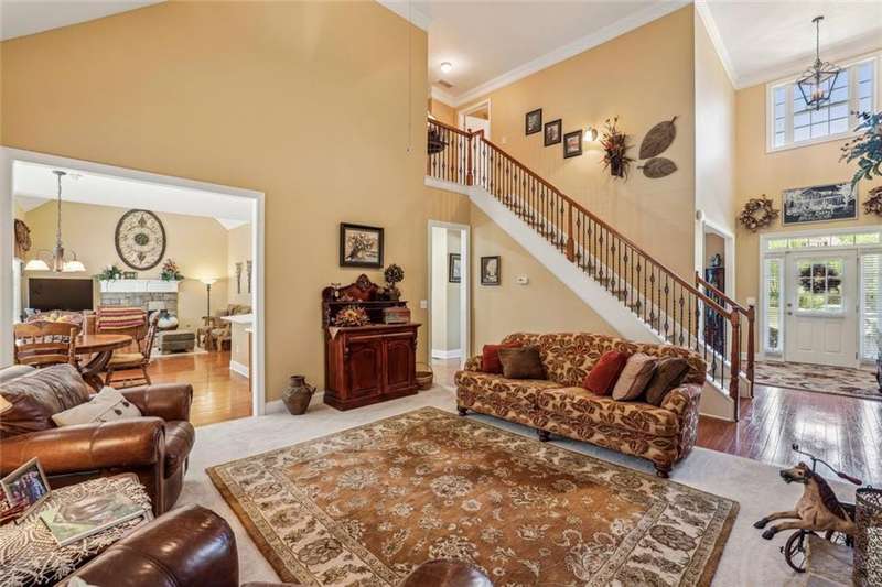 Move-in before the Holidays!!! Master-on-Main. 3rd Car Garage. Screen Porch. Epoxy-coated Garage and Porch floors. Irrigation System, Large Deck and Under-Decking for LL Patio. LeafGuard on all Gutters. Workshop. Over $180,000 in upgrades, renovations and improvements have been made to this home. Beautiful Traditional Home with Craftsman Touches in sought-after Sagewood neighborhood. East Forsyth HS District AND less than 5 miles to Lake Lanier. Expansive 5-bedroom, 3.5-bath home sits on over half an acre in a quiet cul-de-sac, offering the perfect blend of comfort, and functionality. From the moment you arrive, the inviting wide front porch sets the tone. Inside, discover an updated kitchen with quartz countertops, tile backsplash, stainless steel appliances, and a walk-in pantryall open to a cozy keeping room with a stunning stone fireplace and cathedral ceiling. The adjacent sunlit breakfast nook leads directly to the deck and attached screen porch, perfect for enjoying peaceful Georgia eveningsrain or shine. The 2-story great room features a soaring ceiling, second fireplace, and a dramatic open staircase, anchored by a welcoming formal foyer. Hosting family and friends is a breeze in the spacious dining room, which comfortably seats 12. The master-on-main level suite is a true retreat with a multi-tiered trey ceiling, abundant natural light, view into the backyard and a recently renovated spa-like bath complete with dual vanity, frameless shower, walk-in closet, and dressing area. Upstairs, you'll find three generously sized bedrooms, each with ample closet space, and a full bath to shareideal for guests or family. Need room for teens, in-laws, or entertaining? The fully finished terrace level offers a fifth bedroom, full bath, TV viewing area, two storage rooms, a workshop, and access to a third garage bayperfect for a golf cart, garden tractor, or boat. Walk out to a covered patio creating yet another space to relax or entertain in any weather. Enjoy the professionally landscaped, wooded backyard, complete with a rope swing, fire pit area, and walking paths. The yard is fully fenced, and stored gates can be easily reinstalled to close off the terrace-level driveway. This home should check every boxspace, style, setting, and superior finishes. Move-In-Ready!