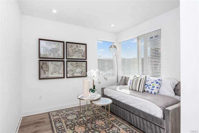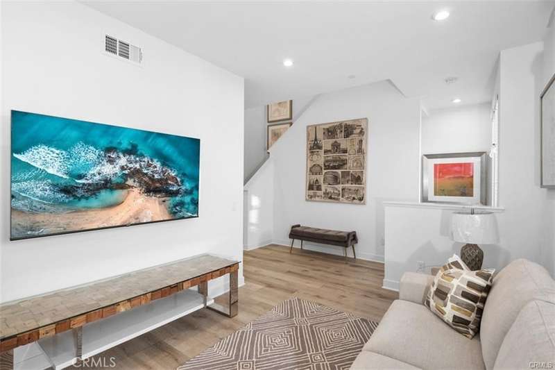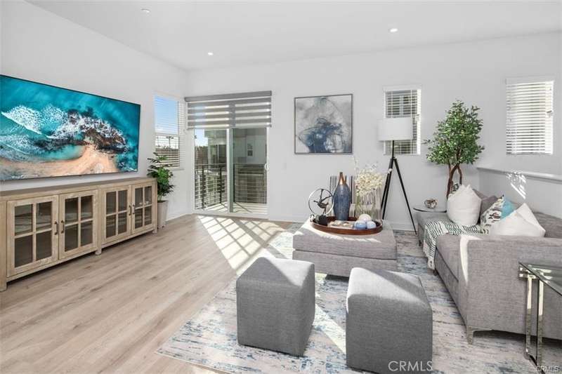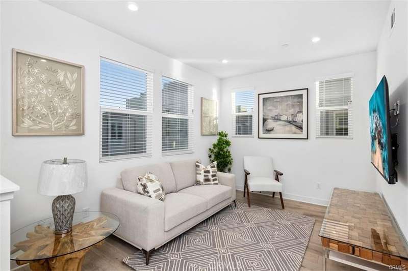Brothers, a brand-new gated community in the heart of Anaheim. This award-winning Plan Three (Terraces) is the largest floor plan available -- fully furnished, beautifully upgraded, and ready to move in today. Step inside to a welcoming entry and private downstairs suite, perfect for guests or a home office. The main living level features an open-concept design with a bright great room, casual dining area, and two spacious covered balconies -- ideal for indoor-outdoor entertaining. The chef's kitchen shines with Quartz countertops, a large center island, breakfast bar, and designer cabinetry. Upstairs, the primary suite offers a peaceful retreat with a spa-inspired bath, walk-in shower, and generous closet. The third-level loft (currently used as a fourth bedroom) adds flexibility for your lifestyle -- whether that's a media room, home gym, or creative space. This smart home comes fully equipped with washer, dryer, refrigerator, four flat-screen TVs, and PAID-OFF SOLAR for energy savings. Located just minutes from Disneyland, Angel Stadium, the Honda Center, top medical facilities, and major shopping destinations, 100 West offers the best of Orange County living with no Mello-Roos and low HOA dues. Live beautifully, live conveniently -- and make this rare, move-in-ready home yours today.