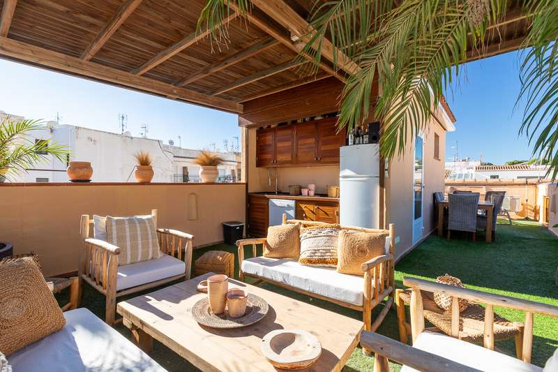 House next to the Port of Jávea close to services and the sea, It is divided in several levels. On the first floor is the spacious living-dining room with gas fireplace, kitchen open to the living room with pantry. The first floor is used as a sleeping area, with 2 double bedrooms, 1 bathroom with shower and the master bedroom with bathroom en suite. On the top floor is the terrace with summer kitchen with awnings, from where you can enjoy beautiful views of the sea and the Cuesta San Antonio. In the basement there is a jacuzy, sauna, 1 toilet and a large room. Furthermore, there is a flat with independent access with living room with open kitchen, 2 bedrooms and a complete bathroom. The property is very bright and has marble floors, underfloor heating and air conditioning. Ideal for living with many comforts in a spacious house a few metres from the Grava beach in Jávea.