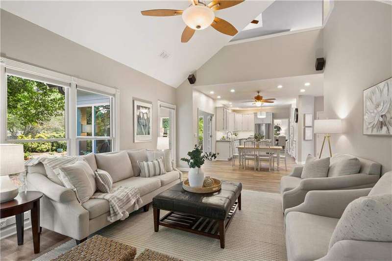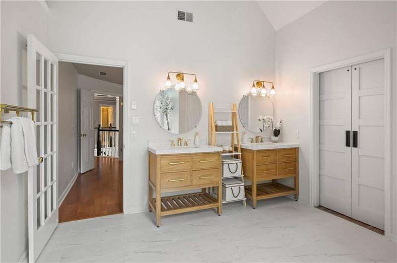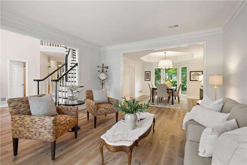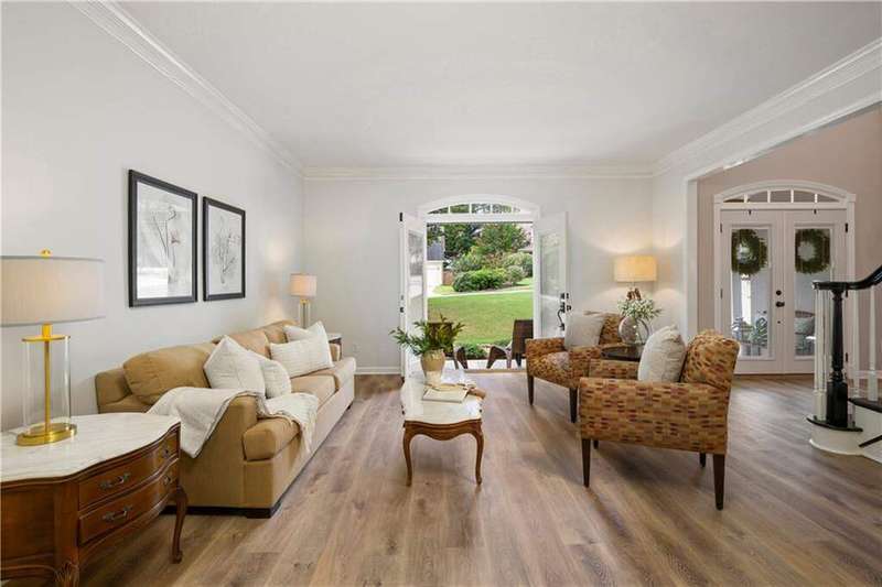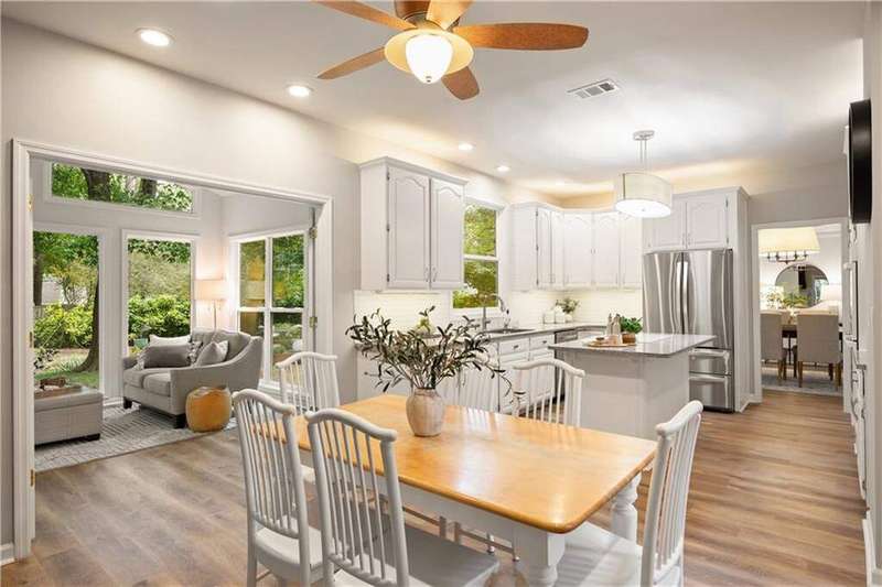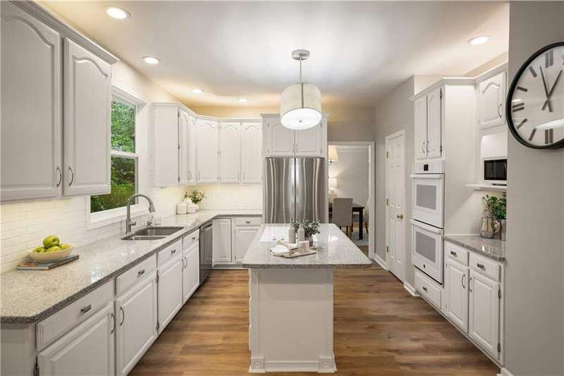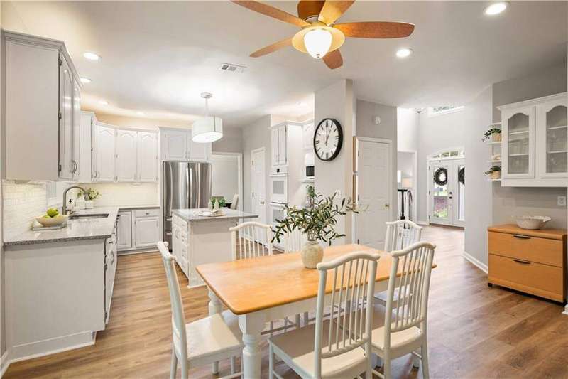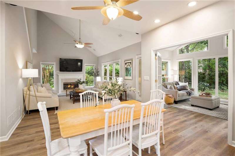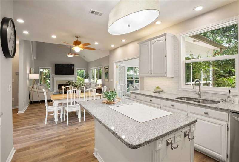 Impeccably maintained by the original owners and perfectly positioned on a quiet cul-de-sac in sought-after Hillbrooke, this beautifully updated 5-bedroom, 3-bath home blends timeless style with modern functionality. Recent upgrades include a NEW roof (August 2025), NEW windows and doors, and a recently painted Hardie Plank exterior with hardcoat stucco front. It's the largest floor plan in the neighborhood and it's totally move-in ready! From the welcoming front porch to the serene backyard oasis, every detail has been thoughtfully designed for comfort, connection, and easy living. Step into the sunlit two-story foyer, where neutral paint and wide-plank LVP flooring create an inviting flow. The open floor plan is anchored by a chef's kitchen featuring crisp white cabinetry, granite countertops, double ovens, a subway tile backsplash, under-cabinet lighting, hidden outlets, and a generous casual dining area. A walk-in pantry keeps everything organized. AND GOOD NEWS - Kitchen island has an existing gas line and capped downdraft for easy install of a future gas cooktop with downdraft. The kitchen opens to a vaulted great room with surround sound, a wall of windows, and a cozy fireplace-perfect for gatherings. French doors lead to a bright sunroom overlooking the lushly landscaped backyard. It's a tranquil sanctuary full of perennials so you can just relax and watch them grow while you enjoy your morning coffee! A formal dining room, a separate sitting room/office with French doors, and a main-level guest suite (or private office) with a full bath provide flexibility for modern living. Upstairs, the oversized primary suite is a true retreat with a vaulted ceiling, sitting area with fireplace, and a spa-inspired, fully-renovated bath featuring a frameless glass shower, standalone soaking tub, dual vanities, and barn doors opening to an expansive walk-in closet with off-season storage. Three spacious secondary bedrooms share an updated hall bath with dual sinks, while a flexible loft offers space for a workout area, gaming zone, or reading nook. Outside, the private, level backyard is a showstopper-meticulously landscaped with easy-care perennials, dry riverbeds, winding pathways, and tranquil sitting areas. Multiple gathering spots, including a patio, firepit, outdoor dining space, and lawn, make it ideal for entertaining, play or relaxing. The 2-car garage offers insulated doors, and the spacious laundry/drop zone off the garage includes a soaking sink and extra storage. Hillbrooke residents enjoy swim/tennis amenities, a welcoming community atmosphere, and a prime Johns Creek location close to top schools, parks, Medley Johns Creek (coming soon), Avalon, Halcyon and other area shopping and dining. It's no wonder U.S. News & World Report recently recognized Johns Creek as the #1 Place to Live. Don't miss the magic!