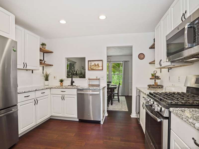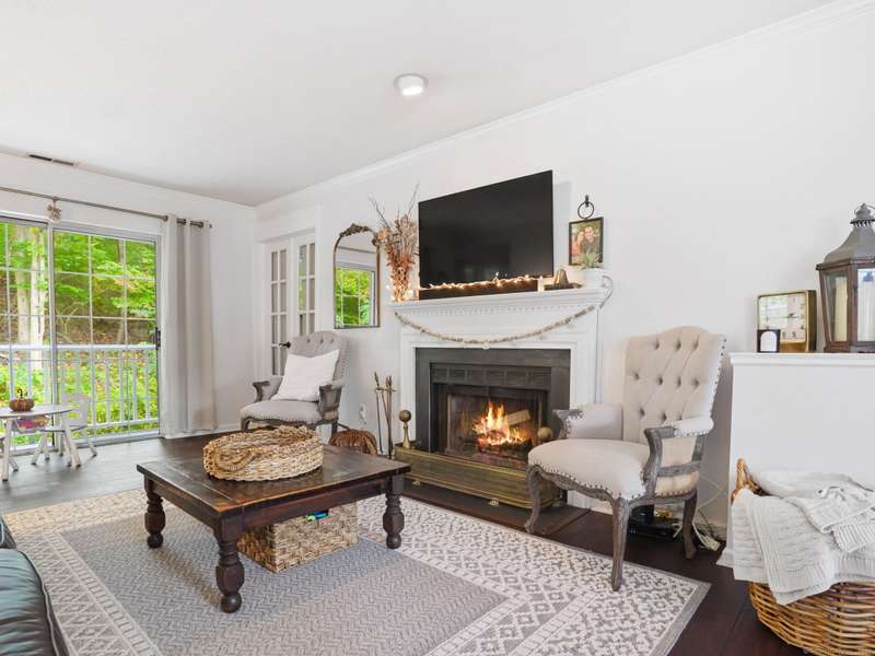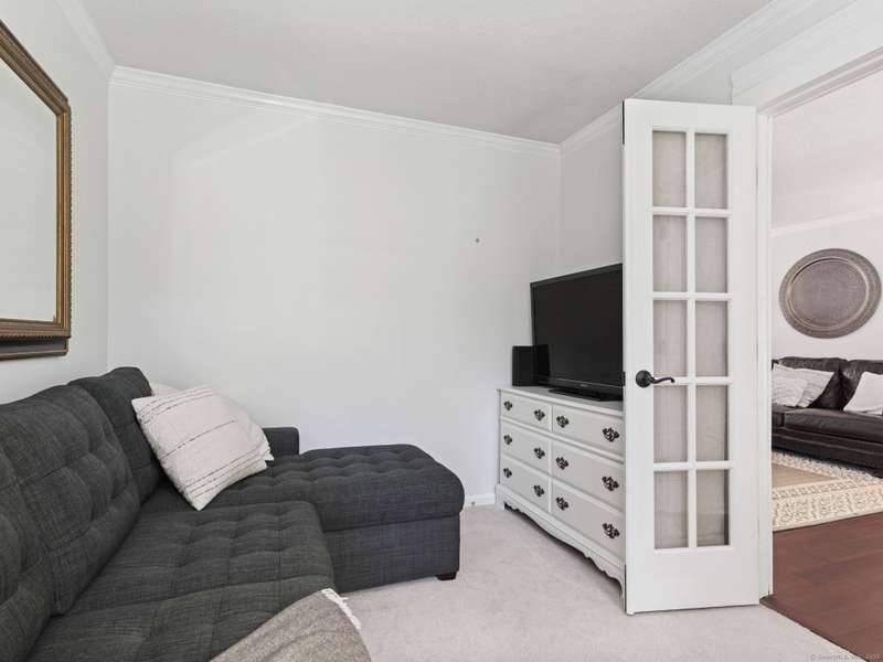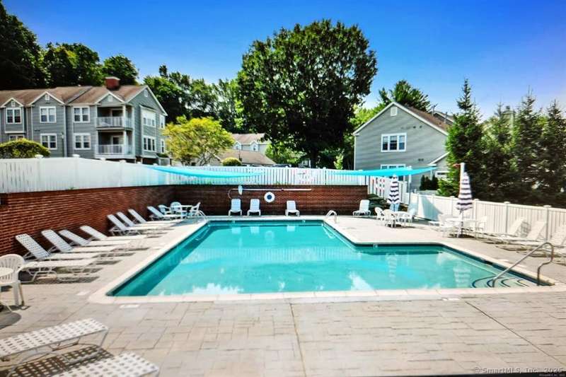 Welcome to 267 Mayfield Drive, a spacious and bright end unit in desirable Trumbull Town Commons. This bright and airy residence offers 2 bedrooms, two full baths. The living room offers a wood-burning fireplace and sliders that open to a deck overlooking a tranquil wooded area. Formal dining room. The kitchen has a walk-in pantry, stainless Steele appliances and a mini beverage cooler(done in 2020). Separate Den/office/ that also can be used for a 3rd bedroom. Primary bedroom has a full bath and walk in closet. Second bedroom has a walk in-closet and a large adjoining full bath. Laundry room closet. Two car garage and storage area in lower level. Furnace replaced in 2023. Salt Water Heated Pool. Walk to Library, Bank, Grocery Store and town hall. Carefree living at its best!