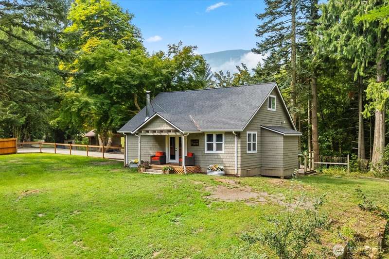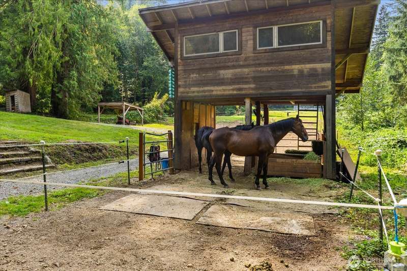 Experience peaceful country living with modern amenities on this 3.5-acre property perfect for horses and hobby farming. The property includes your own gated entrance, an exercise arena, 2 pastures, multiple workshops with power and water (one EV/RV ready), a run in shelter with hay loft and a fully fenced front yard for your chickens and dogs! The charming home offers updated comforts, including new appliances, mini split for AC/heat, a wood stove, and a separate-entrance basement with ADU potential. Located just minutes from Rattlesnake Lake, downtown North Bend, top-rated Snoqualmie Valley schools, and endless trails, with a short commute to Seattle or Bellevue — this is the best of Northwest living!