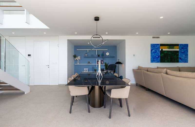 Situated on a sprawling 1,252 sqm plot, the house for sale in Altea Alicante commands privileged views. Its exterior spaces include a meticulously landscaped garden, inviting terraces, a contemporary pool, a convenient rest area, and a spacious garage accommodating two vehicles. Spanning three floors interconnected by a lift, the interior of the house is designed with both aesthetics and functionality in mind. It features a courtesy restroom, a storage and laundry room, and a generously proportioned living room adjacent to an open-plan kitchen and dining area. With ample proportions, the house encompasses four bedrooms, each offering spaciousness and the luxury of a private en-suite bathroom and terrace. The main bedroom indulges in the opulence of walk-in wardrobes, completing the picture of refined coastal living.