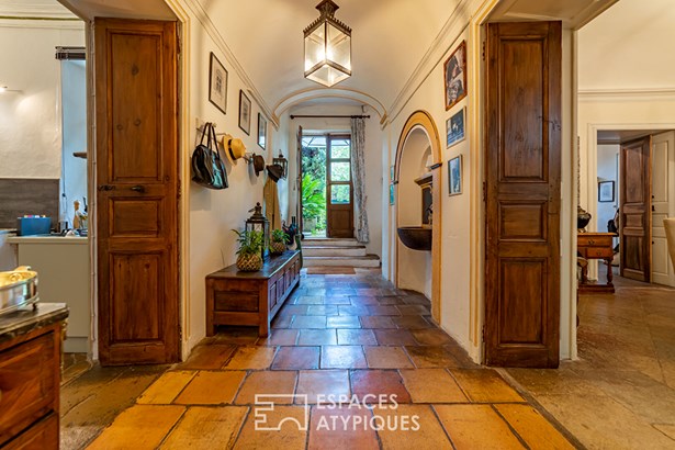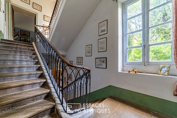 The historical identity is preserved with several style fireplaces and an elegant staircase giving access to the different levels of the castle. On the first floor, a charming terrace offers a breathtaking view of the garden and the campanile.