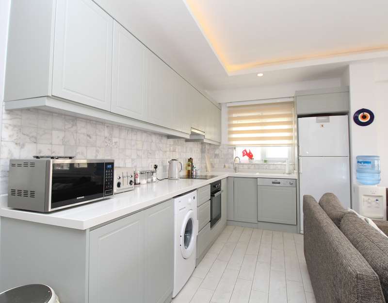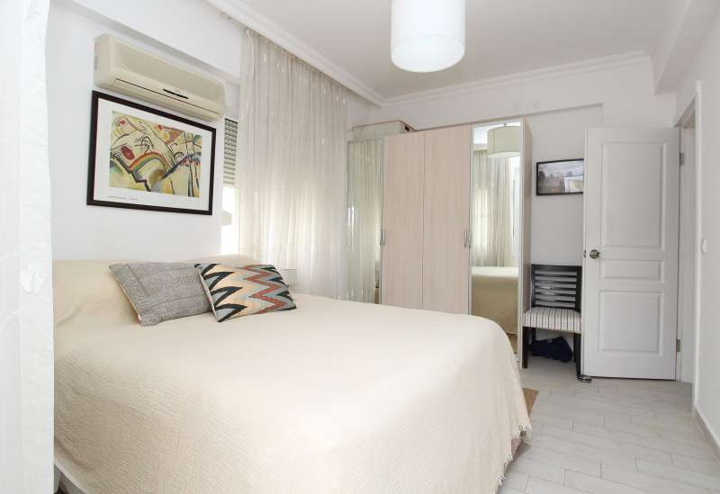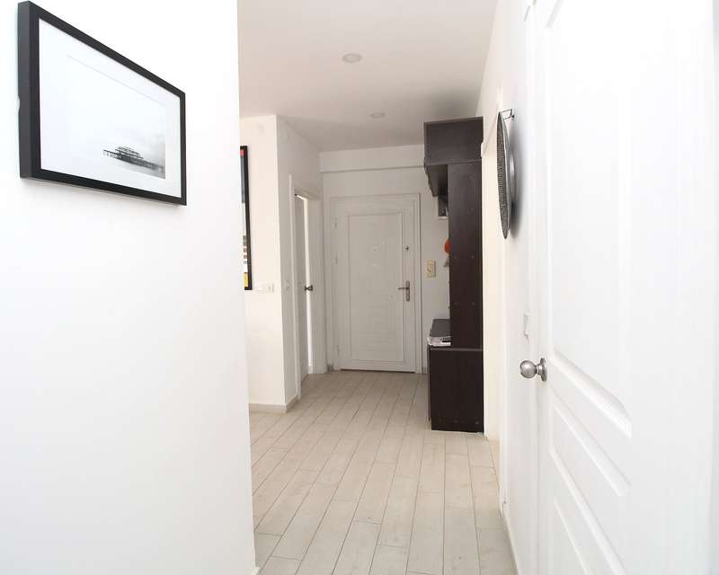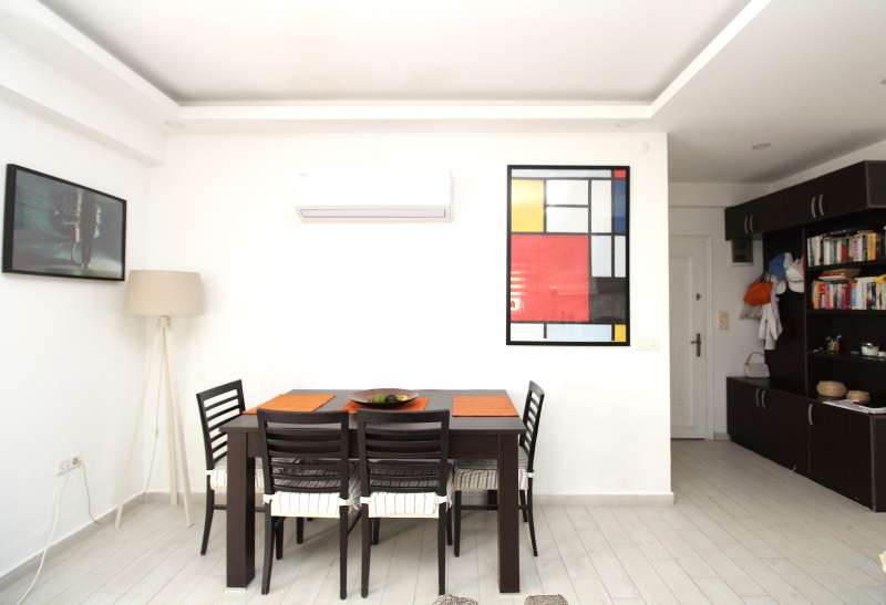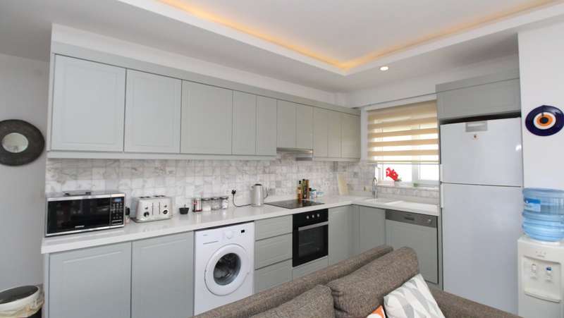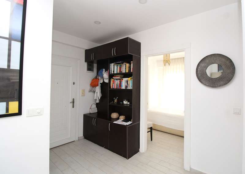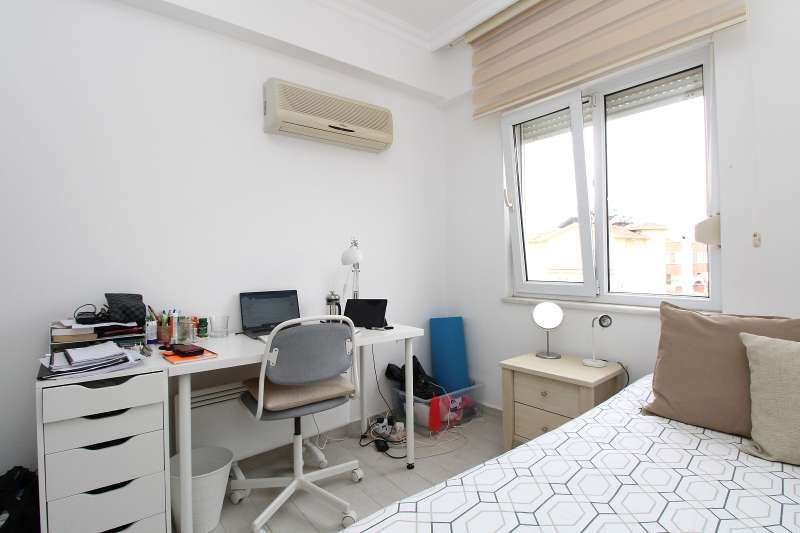 Built on a 3.350 m² land area the complex consists of 4 blocks with 3 floors. With a 110 m² net usage area the apartment includes 3 bedrooms, a salon and an open plan kitchen, 2 bathrooms, and 2 balconies. The fully furnished apartment is ready to be moved into.