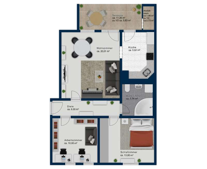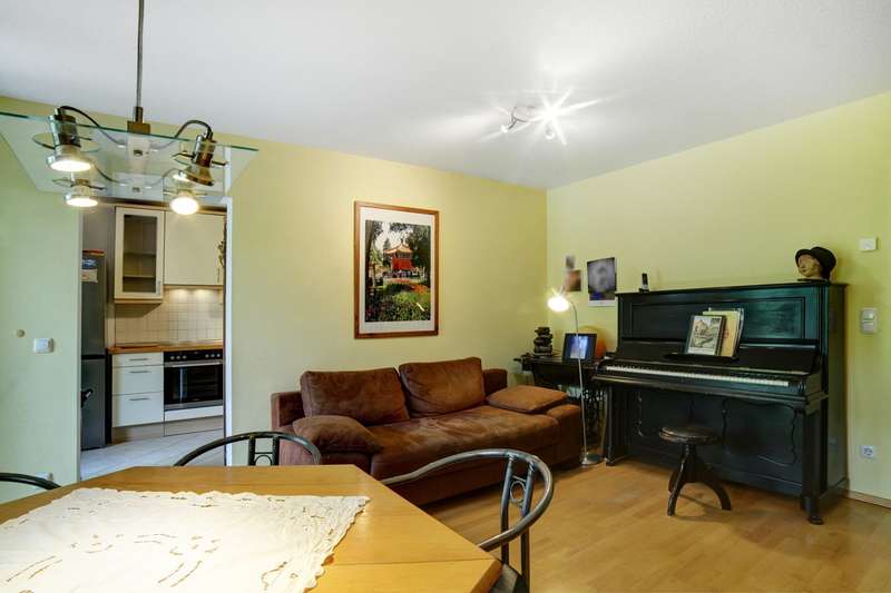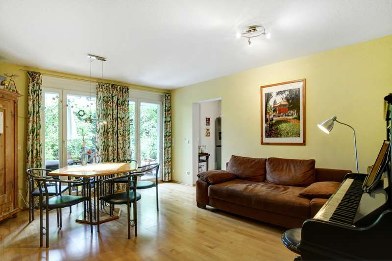 Welcome to this charming 3-room garden apartment in the popular Schwabing-West district - a quiet, green oasis in the middle of the city that impresses with its well thought-out room layout, well-kept condition and homely comfort. Built in 2003, the ground-floor apartment offers a modern home for couples, small families or people looking for an extra room for a home office, guests or children on around 69.73 m² of living space. Upon entering the apartment, the first thing you see is an inviting entrance area. From here, you can turn left into the spacious living and dining room, which impresses with its open design and large window fronts with a bright, friendly feel. The direct access to the south-facing terrace and the well-tended garden extends the living space outside and creates a pleasant connection between the indoor and outdoor areas in the warmer months - perfect for relaxing hours outdoors or sociable evenings. The kitchen, which is connected to the living area, is functionally equipped and offers plenty of worktop and storage space for everyday use. Whether a quick breakfast or an elaborate dinner - every amateur chef will find the perfect setting here. From the hallway, the path continues to the right into a quiet room that can be used flexibly as a children's room, study or guest room. At the end of the hallway is the spacious bedroom, which offers space for a large bed and a closet - a cozy retreat with a private character. Both rooms are located on the quiet cul-de-sac. Right next door is the neat, timelessly tiled bathroom with a spacious corner bathtub - a place to relax and feel good. The apartment is heated by a modern district heating system, which ensures even and efficient heat distribution. The entire residential complex was built in 2003 using solid construction methods and has been continuously maintained since then. All work relevant to modernization was carried out in good time, so there is no need for additional investment. The apartment is in a very well-kept condition and can be customized with little effort. The quiet yet central location in Schwabing-West is particularly attractive. The surrounding area is characterized by well-kept residential buildings, green spaces and an excellent infrastructure. Shopping facilities, schools, kindergartens as well as leisure and recreational facilities are in the immediate vicinity. The public transport connections are excellent: The subway, bus and streetcar are within walking distance and provide quick connections to all parts of the city - ideal for commuters and anyone who wants to stay mobile. This garden apartment combines modern living comfort with a sought-after location and a well thought-out spatial concept. It is suitable for young couples with plans for the future as well as for families with a child or professionals who want to combine working from home with an urban lifestyle. With a little attention to detail, you can create a cozy home that fits your lifestyle perfectly. See the quality and charm of this property for yourself during a viewing. We look forward to hearing from you.