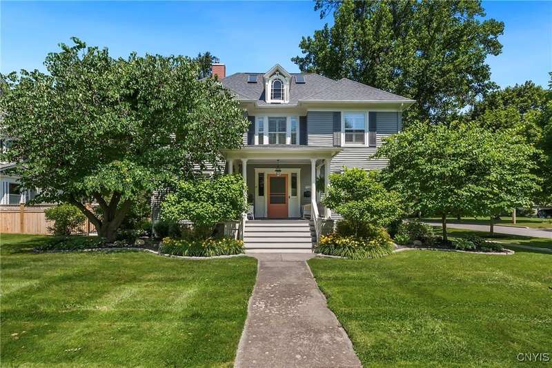 This stunning custom-built Colonial sits on just over 18 acres of land, surrounded by beautifully landscaped grounds that enhance its curb appeal. The home boasts 4-5 bedrooms, two full bathrooms, and one half bathroom. Inside, you'll find a welcoming foyer entrance, formal dining and living areas, and a recently updated kitchen with a convenient coffee station that opens up to the cozy family room with gas fireplace. The family room features plenty of windows and sliders that lead out to the spacious back deck overlooking the lush yard. Additional features include a butler's pantry for extra storage, a mudroom with hooks, and a half bathroom. Upstairs, you'll find a laundry room, a primary bedroom with an updated bathroom complete with a double vanity, soaking tub, tiled shower, water closet, and walk-in closet. There are also three more bedrooms, a bonus room above the garage that can serve as a fifth bedroom or office, and another updated full bathroom. The finished lower level offers additional 1000 square feet of living space not included in the total square footage with a gas fireplace. This exceptional property is located in the award-winning Skaneateles school district and just a short drive away from schools and the village center.