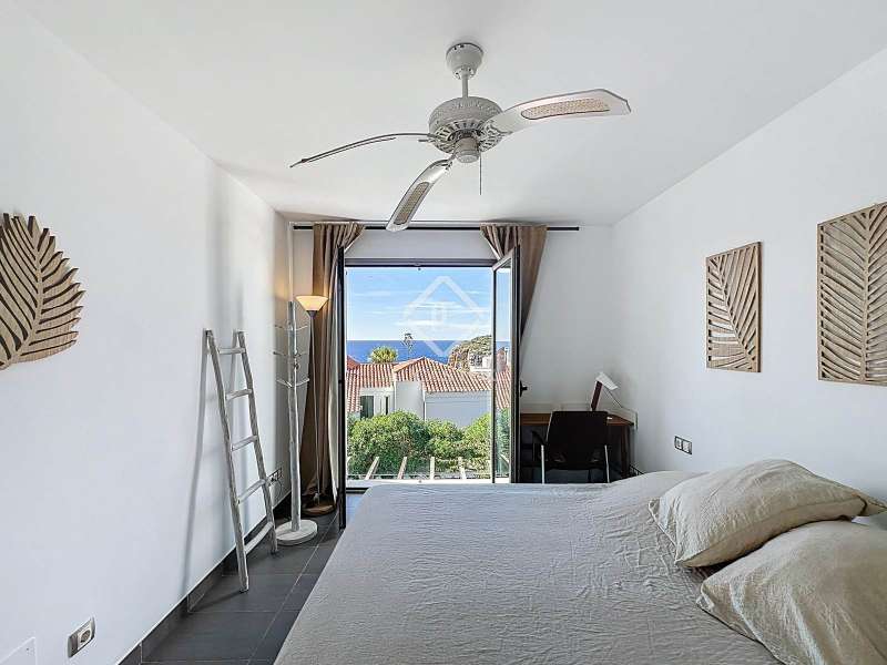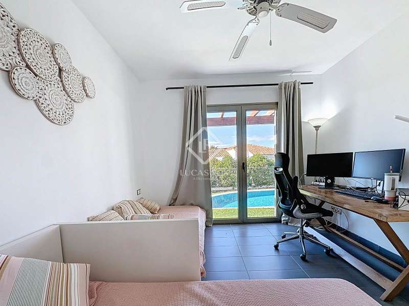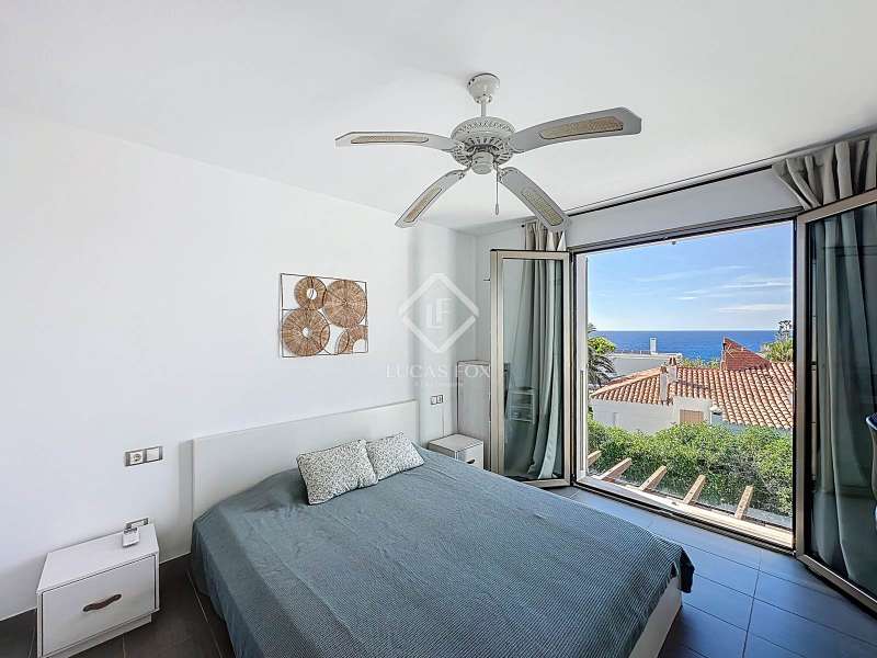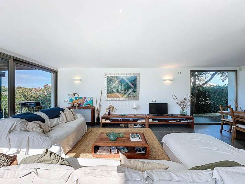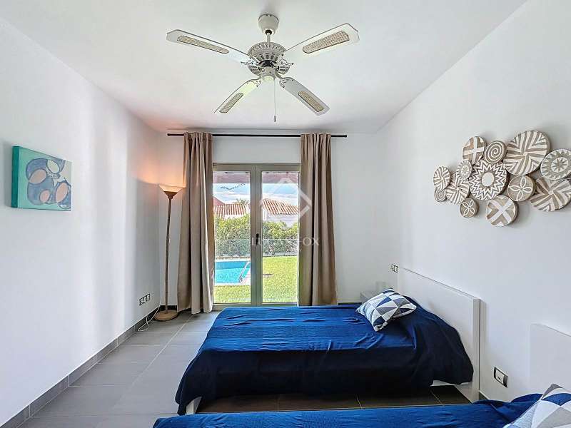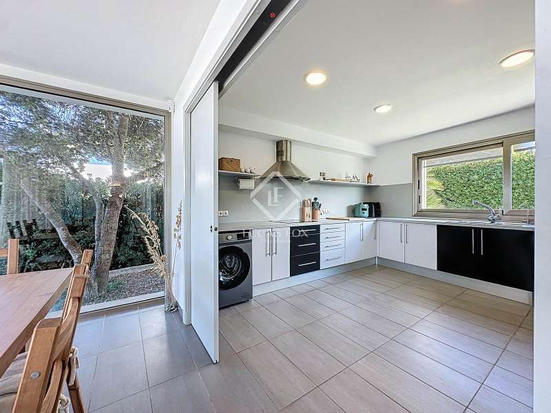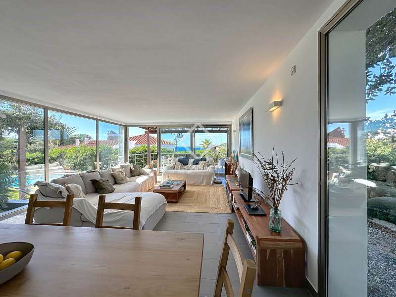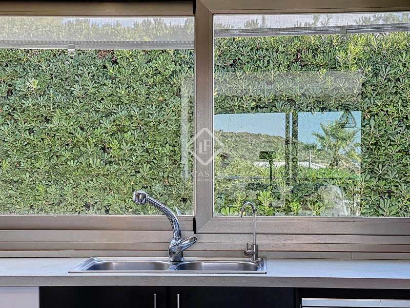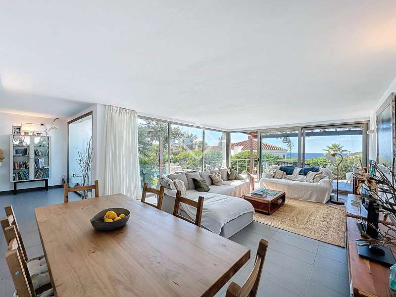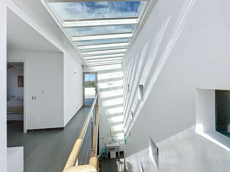 Lucas Fox presents this magnificent contemporary villa on the second line from the sea, situated in an elevated position on the south coast of Menorca, with spectacular views of the Mediterranean and distant views of the island of Mallorca. The property, with 299 m² built on a plot of 744 m², offers a modern design, energy efficiency and comfort, making it ideal as a permanent residence, as well as for tourist investment. The interior is remarkably bright, with large floor-to-ceiling windows spanning several sides and offering sea views from almost every room. It features four spacious bedrooms and three bathrooms, ideal for comfortably accommodating two families. The villa has a valid tourist license, making it an excellent investment opportunity, thanks to its great potential for profitability during the summer season. Exterior, a beautifully landscaped garden with automatic irrigation surrounds the property, along with a private swimming pool. The main terrace offers views of the sea and the island of Mallorca on the horizon. Among its features are heating, air conditioning, solar panels, an alarm system and a large underground garage with capacity for two vehicles. The Es Canutells area is one of the most appreciated on the island for its natural environment, its beautiful beach, its sea caves and the many water activities it offers, such as kayaking or snorkeling. An exceptional property that combines luxury, sustainability and an incomparable natural environment.