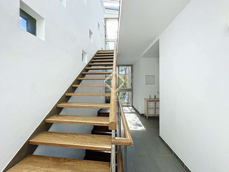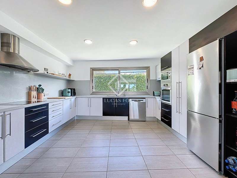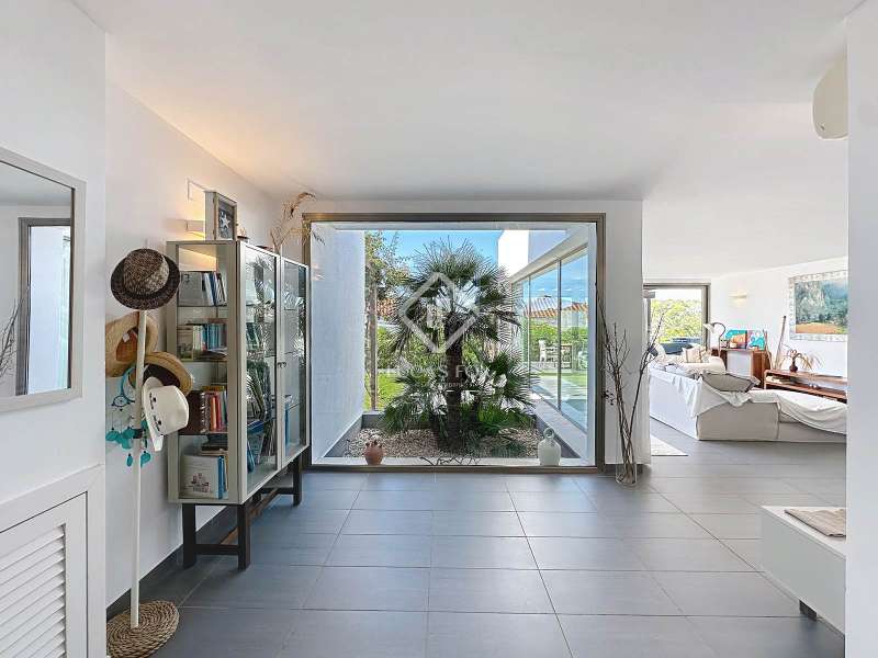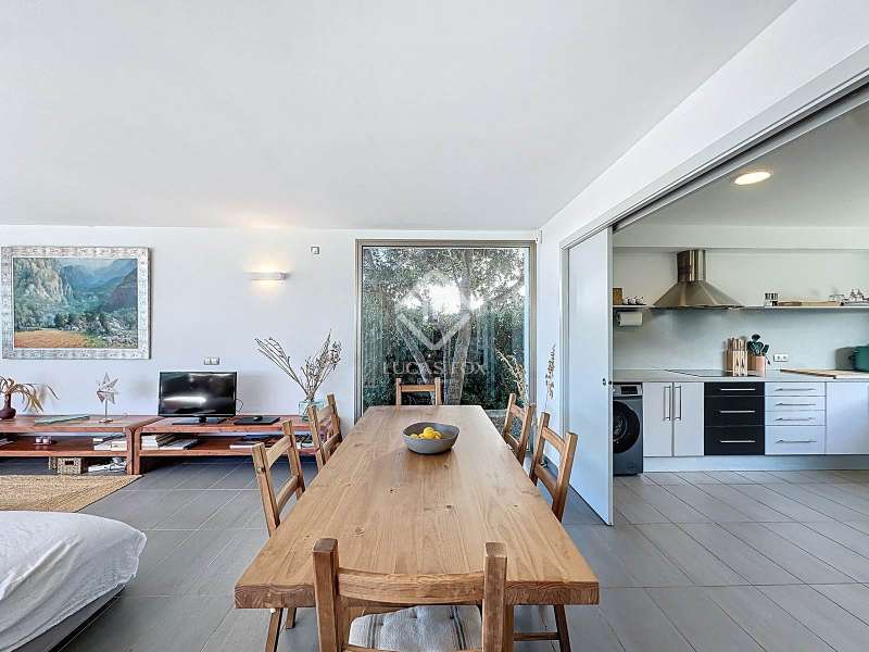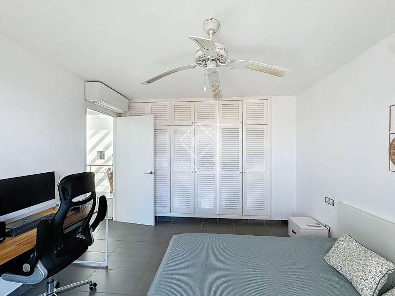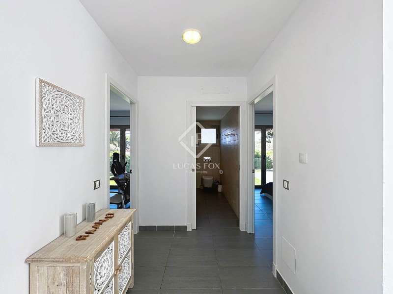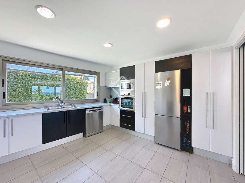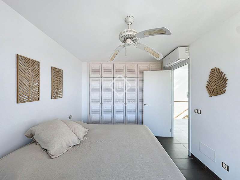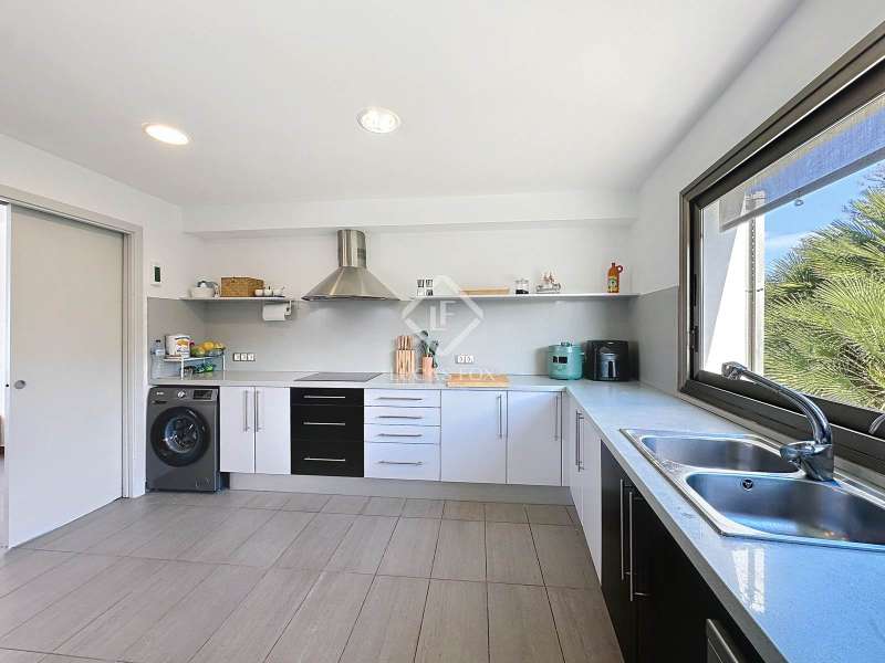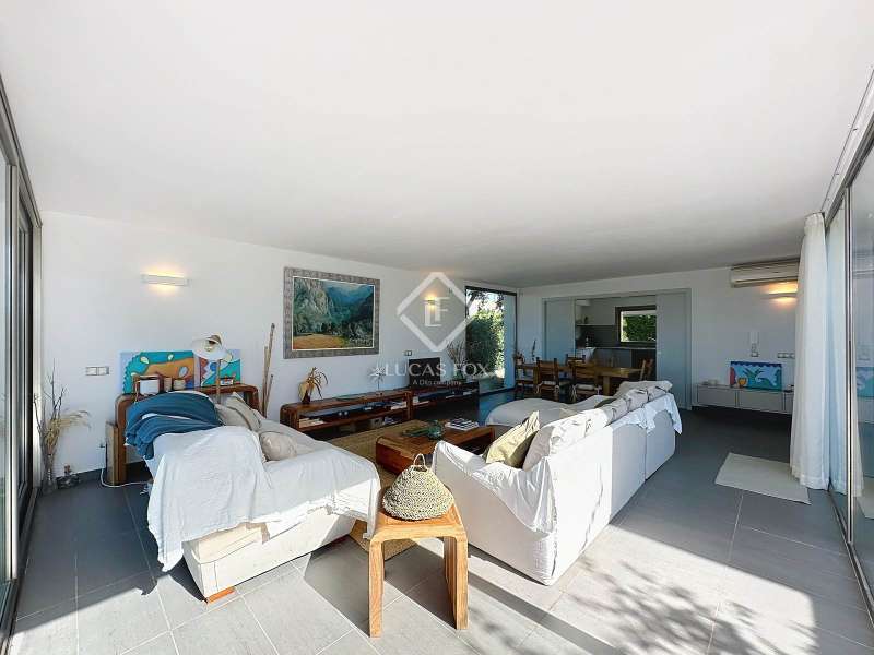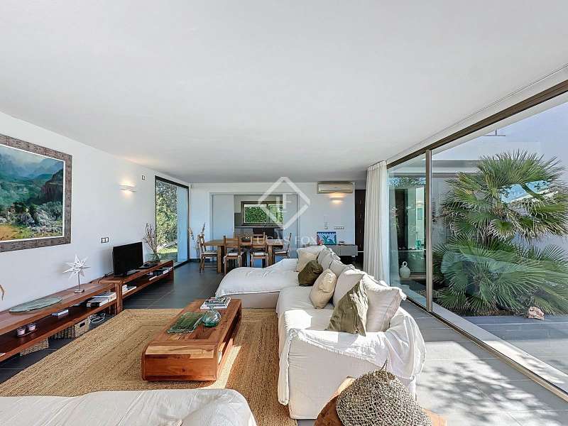 Lucas Fox presents this magnificent contemporary villa on the second line from the sea, situated in an elevated position on the south coast of Menorca, with spectacular views of the Mediterranean and distant views of the island of Mallorca. The property, with 299 m² built on a plot of 744 m², offers a modern design, energy efficiency and comfort, making it ideal as a permanent residence, as well as for tourist investment. The interior is remarkably bright, with large floor-to-ceiling windows spanning several sides and offering sea views from almost every room. It features four spacious bedrooms and three bathrooms, ideal for comfortably accommodating two families. The villa has a valid tourist license, making it an excellent investment opportunity, thanks to its great potential for profitability during the summer season. Exterior, a beautifully landscaped garden with automatic irrigation surrounds the property, along with a private swimming pool. The main terrace offers views of the sea and the island of Mallorca on the horizon. Among its features are heating, air conditioning, solar panels, an alarm system and a large underground garage with capacity for two vehicles. The Es Canutells area is one of the most appreciated on the island for its natural environment, its beautiful beach, its sea caves and the many water activities it offers, such as kayaking or snorkeling. An exceptional property that combines luxury, sustainability and an incomparable natural environment.
