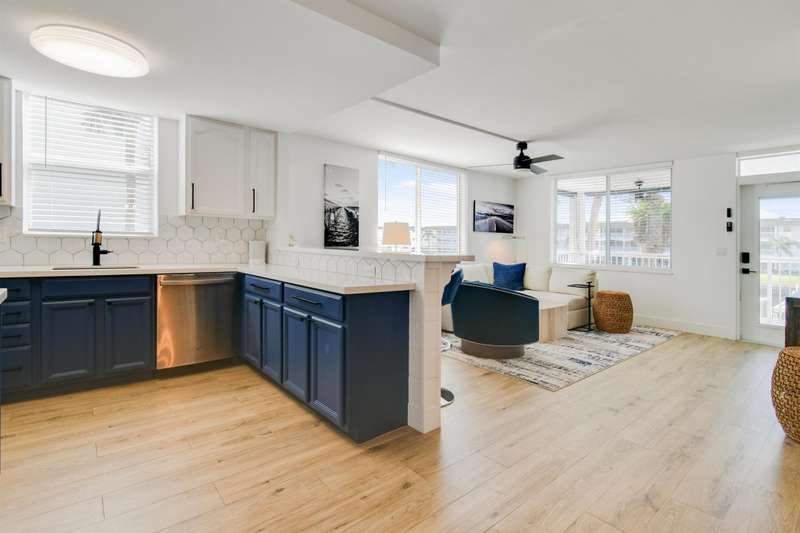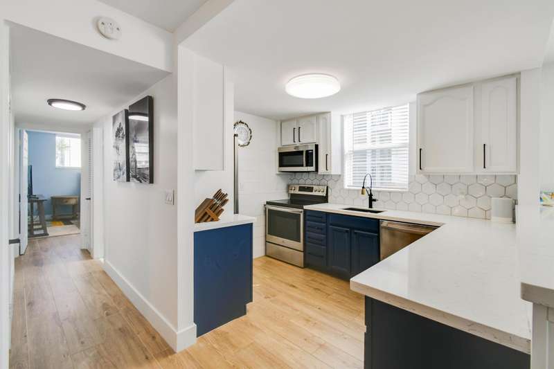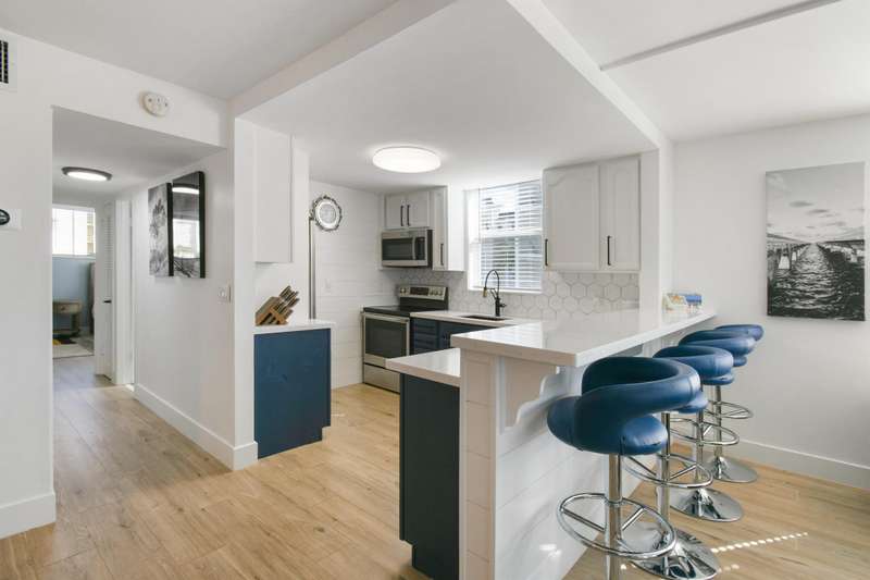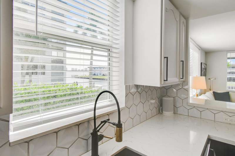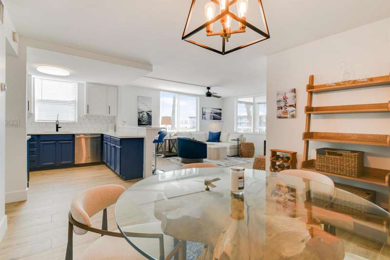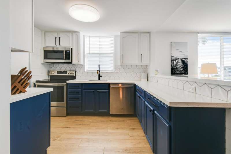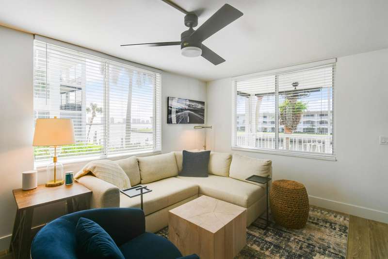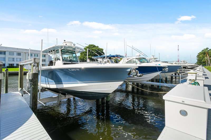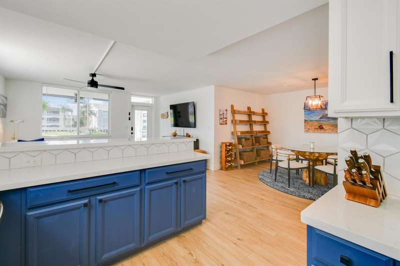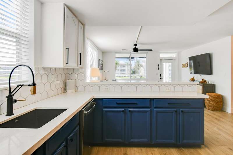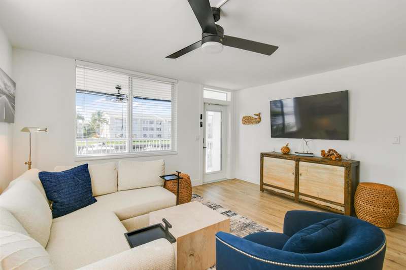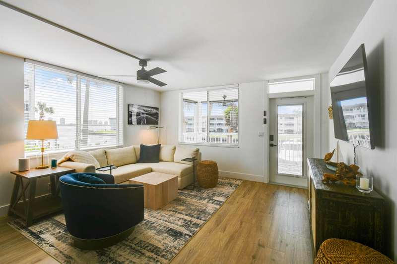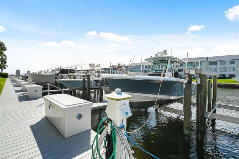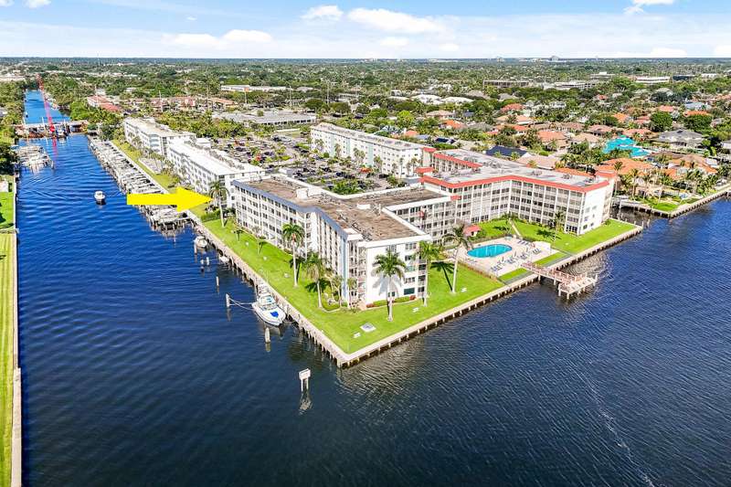 Rarely available! 2 bedroom 2 bathroom end unit condo with a 40 x 16 private deeded dock complete with a 24,000 lb lift, max beam 11'10''! Enjoy breathtaking panoramic views of the Earman River and Intracoastal waterway from your living room or private screened patio. This beautifully updated condo is the perfect place to experience the beauty of waterfront living. Your coastal retreat includes stainless-steel appliances, elegant quartz countertops in the kitchen, updated bathrooms, impact windows, wood-like porcelain tile flooring throughout and custom California Closets in the primary & secondary bedrooms.