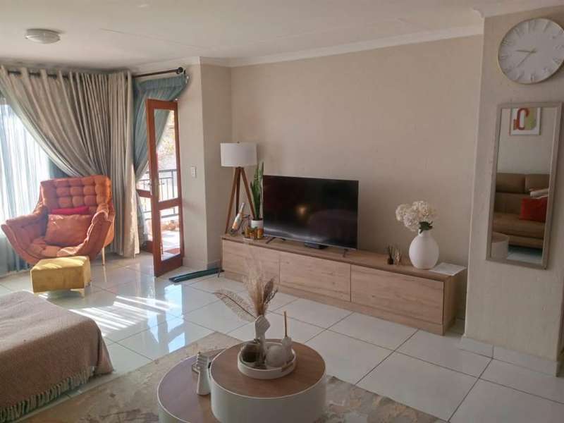 An upstairs unit is available for sale in the sought-after Meyersdal area. This unit features: * 3 reasonably sized bedrooms with built-in cupboards * 2 bathrooms: The first bathroom includes a toilet, shower, and a "his and hers" basin, while the second bathroom has a bath, basin, and toilet. * An open-plan kitchen with ample cupboard space. * An open-plan lounge that opens onto a balcony with views of the communal gardens. * Access to a communal swimming pool. * 1 open parking space. * Electric fencing and an access gate for enhanced security. The property is centrally situated with easy access to all amenities. Please do not hesitate to contact me to arrange a viewing