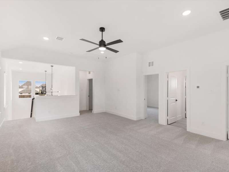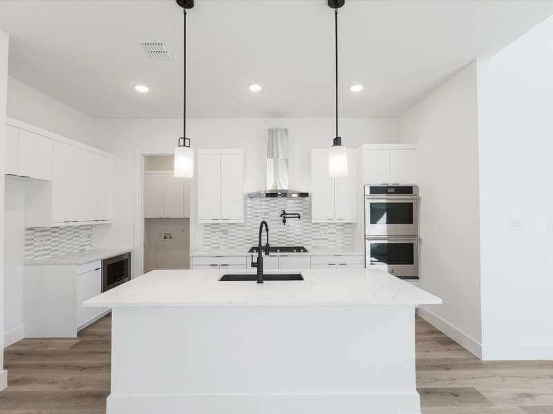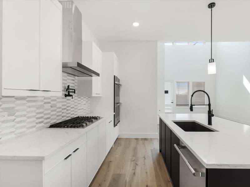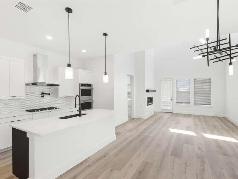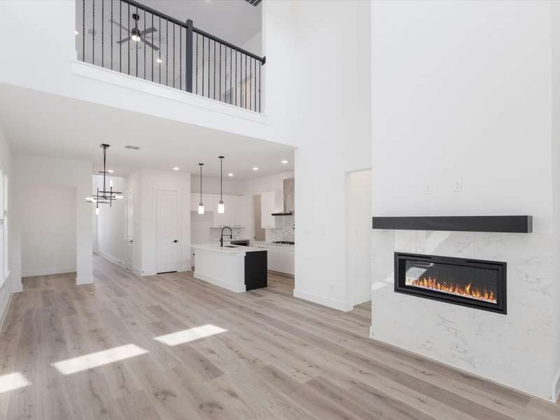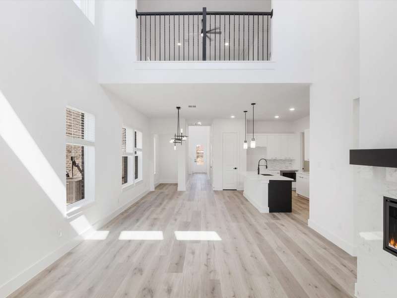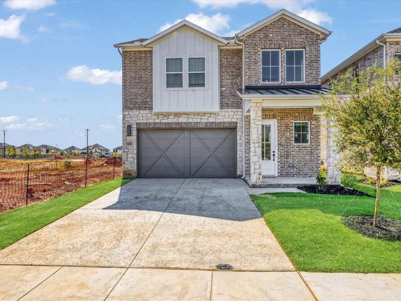 Ready Now! Feel like a Royal in our Alexander floor plan. Step into the epitome of modern living with this brand-new Monarch Home, where architectural sophistication blends seamlessly with everyday comfort. This 4-bedroom, 3.5-bath masterpiece includes a spacious game room and a functional pocket office, offering versatility for both entertainment and work-from-home lifestyles. Designed for discerning tastes, the home boasts premium finishes throughout. The Chef-Inspired Kitchen is outfitted with a JennAir appliance package, including double ovens and a 5-burner gas cooktop, making it a culinary dream. Enjoy the elegant touch of quartz countertops, a pot filler, Blanco Silgranit sink, and soft-close cabinetry with upgraded hardware. A decorative backsplash adds a sleek, modern flair. Gather around the crystal-accented gas fireplace under the ambient glow of luxury Kichler lighting. The Karastan Cultivated wood flooring in common areas downstairs as well primary bedroom, combined with 8-foot doors and 12x24 sleek tile accents, creates a clean and contemporary vibe. The Resort-Worthy Primary Suite has a luxurious primary bath featuring floating cabinets, a large frameless glass shower, decorative tiles, framed mirrors, and quartz countertops with undermount sinks. Enjoy effortless indoor-outdoor flow with a large covered patioperfect for entertaining, relaxing evenings, or weekend barbecues, rain or shine.Enjoy gridless modern windows that provide unobstructed views and flood the home with natural light. The community is in fabulous location near an abundance of shopping, dining, entertainment, just minutes from PGA. Located within the highly acclaimed Frisco Independent School District, this home ensures top-tier education in a thriving community. Every detail in this Monarch Home reflects a commitment to excellence and precision craftsmanship, promising a lifestyle of comfort, elegance, and modern flair.