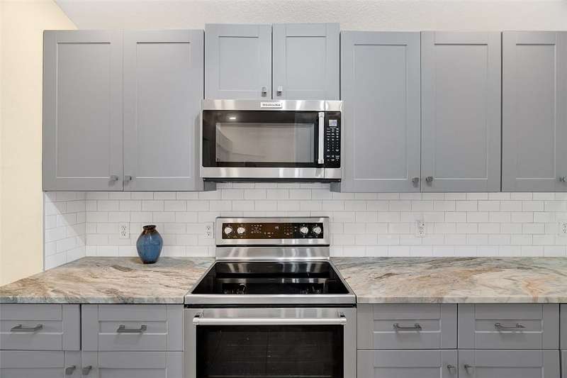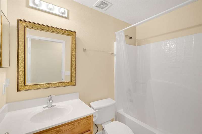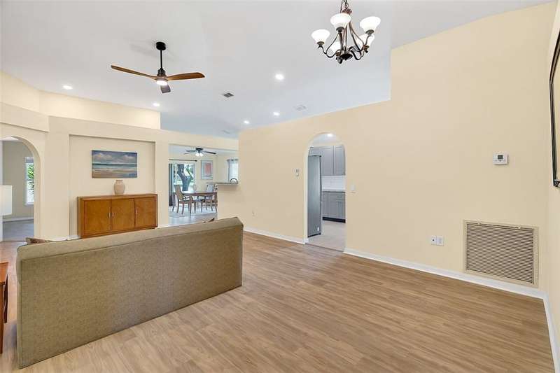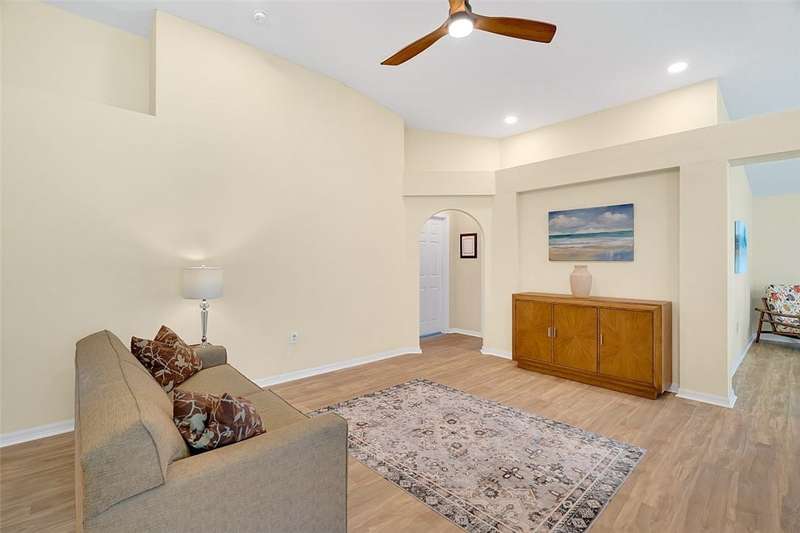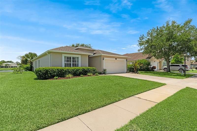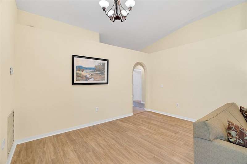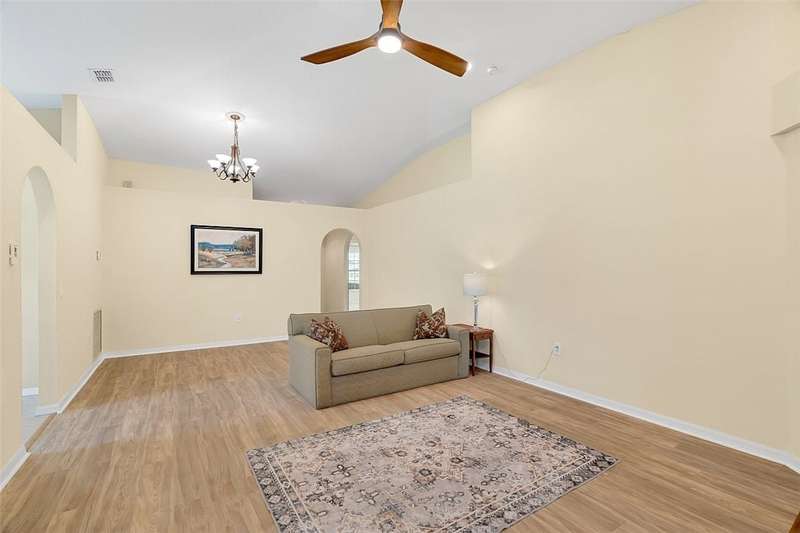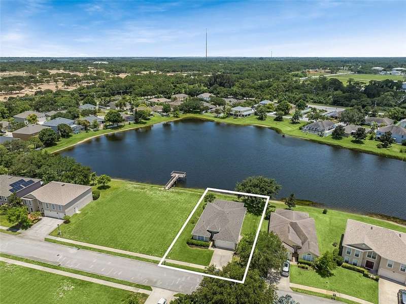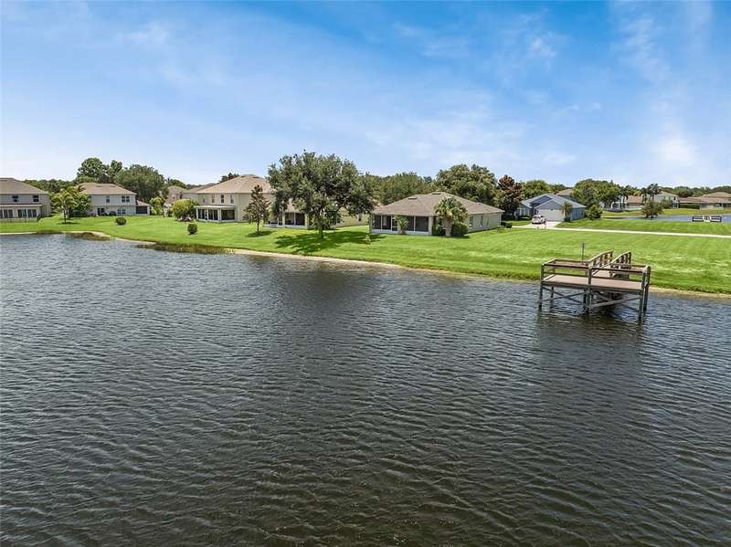 Lakefront living in the gated community of Lakes at Sandridge! This 4bd/2ba home features a flexible open-concept floorplan, expansive water views, a beautifully updated kitchen w/ stone counters, ss KitchenAid appliances, new cabinets, and tile backsplash. Interior features include high, vaulted ceilings, updated primary closet + storage, and bath with a modern tiled shower. Enjoy the screened patio + a 2022 Roof! HOA fees are under $77/month and under $1,100/year for insurance. Why settle for builder-grade finishes and high expenses? A must-see value in a desirable neighborhood! Rm sz apprx.