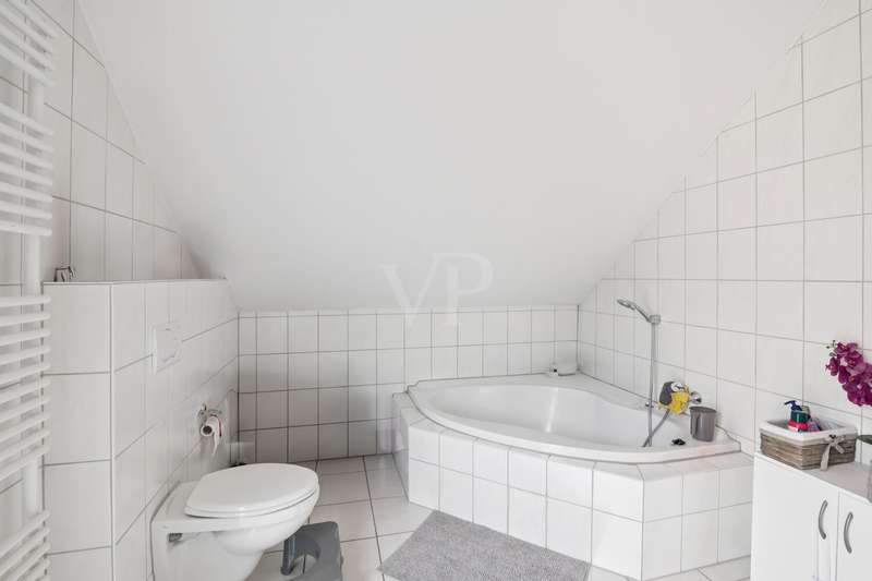 Welcome to your new home - or your secure capital investment. This detached house impresses with a living space of approx. 210 m² on a plot of approx. 373 m² and presents itself as a versatile property with an attractive rental situation. The entrance area leads directly into the open-plan living and dining area on the first floor, which forms the central hub of the house thanks to its spacious design and the adjoining fitted kitchen. An additional study, which is also ideal for use as a guest room, a guest WC and a practical storage room complete this level. On the top floor, there are three bedrooms with cozy sloping ceilings, which are ideal as children's, parents' or guest rooms. The bathroom is equipped with both a bathtub and a shower and thus offers contemporary comfort. The basement opens up further possibilities: Three additional rooms can be used flexibly as bedrooms, guest rooms or hobby rooms. A utility room with access to a further shower room rounds off the space available on this level. A small garden with a cozy terrace invites you to relax outdoors, while both a carport and an outdoor parking space are available for vehicles. The property is currently rented out, "housing approved", and generates a monthly basic rent of 1,680 euros. This makes it equally suitable as a comfortable home and as an attractive investment with a solid return. For further information or to arrange a viewing appointment, please do not hesitate to contact us at any time. Contact us to find out more about this attractive property and see the benefits of this investment for yourself.