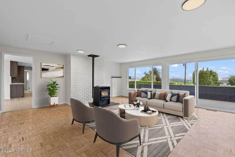 Discover this beautifully updated single-level home offering three separate living areas and three bedrooms with potential for a fourth or home office. Step inside to find a brand-new kitchen, fresh flooring throughout, and new interior and exterior paint that make the home feel light, bright, and welcoming. The open layout is complemented by two cozy pellet stoves, ideal for relaxing evenings. Enjoy year-round comfort with a new HVAC system, while large windows frame breathtaking valley views. Outdoors, a fenced backyard with a spacious patio creates the perfect space for entertaining or simply enjoying the peaceful surroundings. Additional features include a two-car garage, low-maintenance landscaping, and a convenient yet country-feel location close to amenities. This home blends modern updates with scenic charm. Ready for you to move in and make it your own!