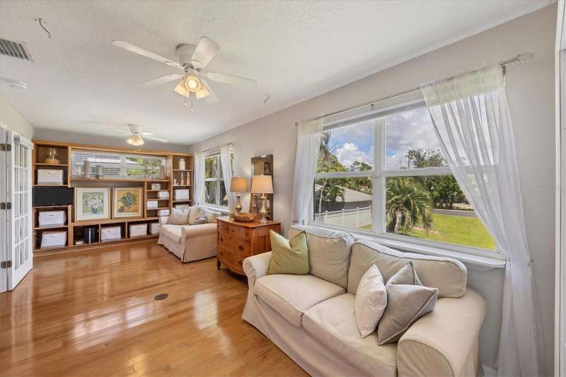 Welcome to Heritage Bay, a hidden gem nestled on Snead Island—a quaint, close-knit neighborhood with a single entrance and exit, offering privacy, peace, and true island charm. Surrounded by natural beauty, marinas, and directly across the street from the Bradenton Yacht Club, this location is ideal for boating enthusiasts and anyone seeking a relaxed coastal lifestyle. This light and bright 4-bedroom, 2-bath stilt home offers an open-concept layout featuring a spacious great room, kitchen, and dining area—perfect for entertaining or everyday living. The oversized primary bedroom offers versatile space with French doors leading to a potential fourth bedroom, office, den, nursery, or even the opportunity to create a luxurious en-suite bath. Enjoy morning coffee or evening breezes on the screened second-story porch with peekaboo water views, or head downstairs to the covered paver patio—ideal for gatherings rain or shine. The entire lower level offers an abundance of storage and endless possibilities for workshop space, hobby rooms, or recreational gear. Recent updates include a new water heater (Oct. 2024), HVAC (2023), and a roof installed in Nov. 2017—offering peace of mind for years to come. And there's more: a buildable lot located directly behind the property (MLS #A4625515) is also available—imagine the possibilities! Build a guest house, multigenerational home, or simply enjoy the extra space. The owner, who has cherished this home for 29 years, confidently says: Snead Island is something truly special. Come discover the peaceful lifestyle, natural beauty, and welcoming community that makes this place so unique.