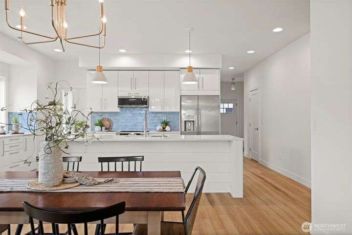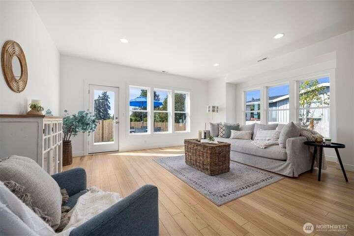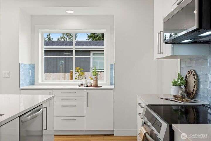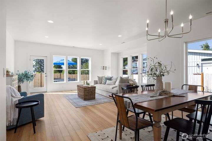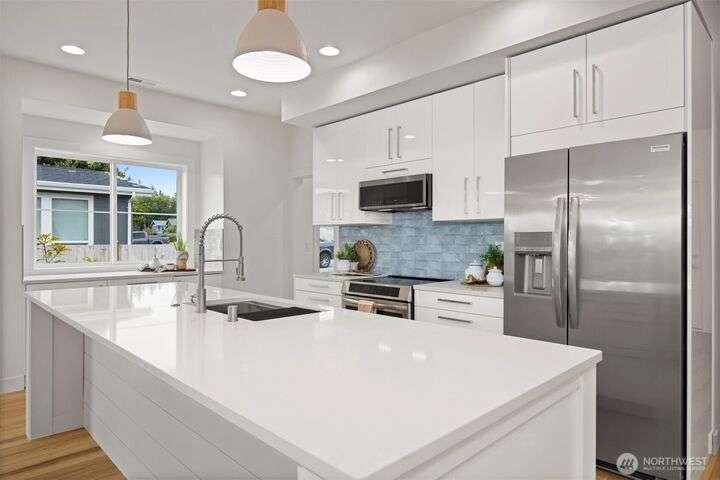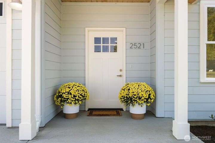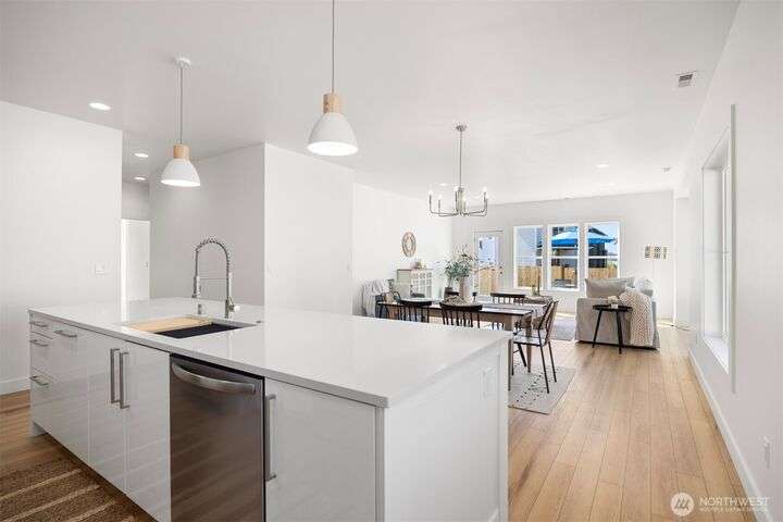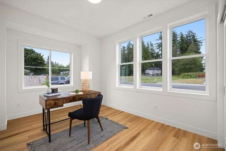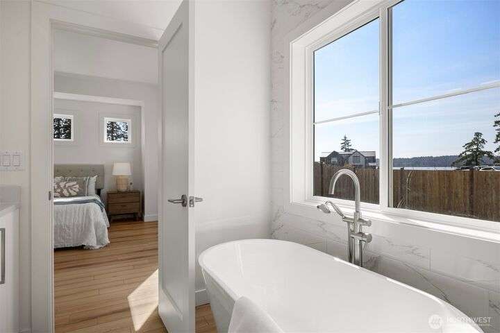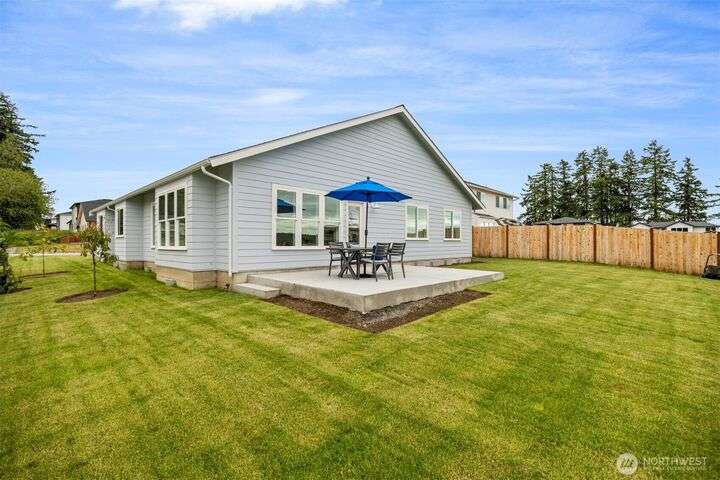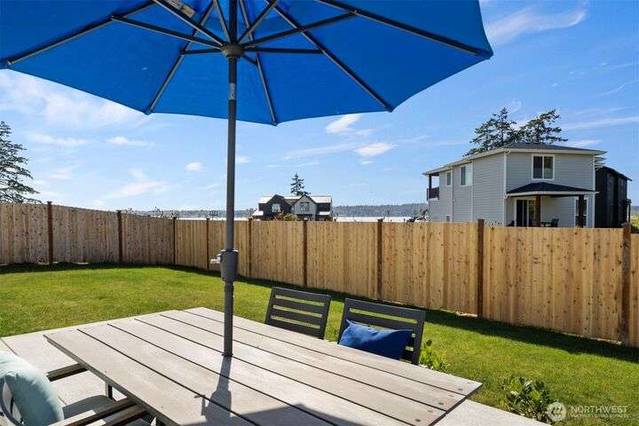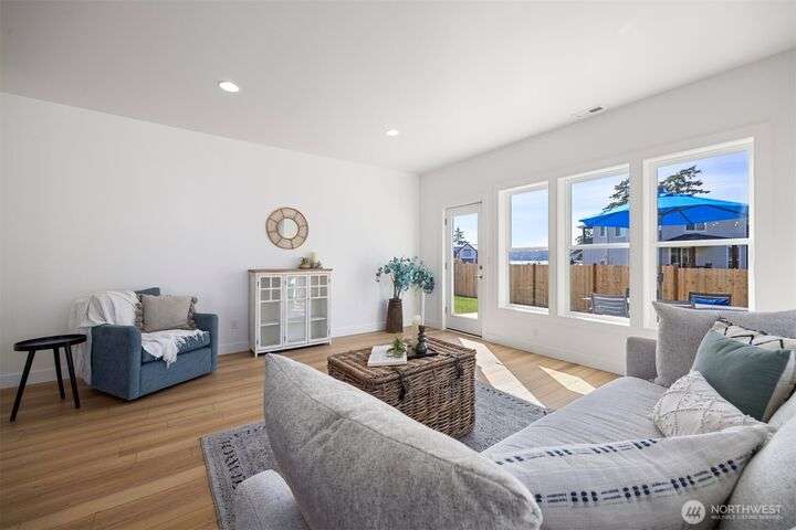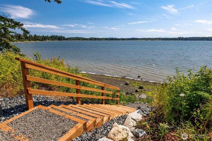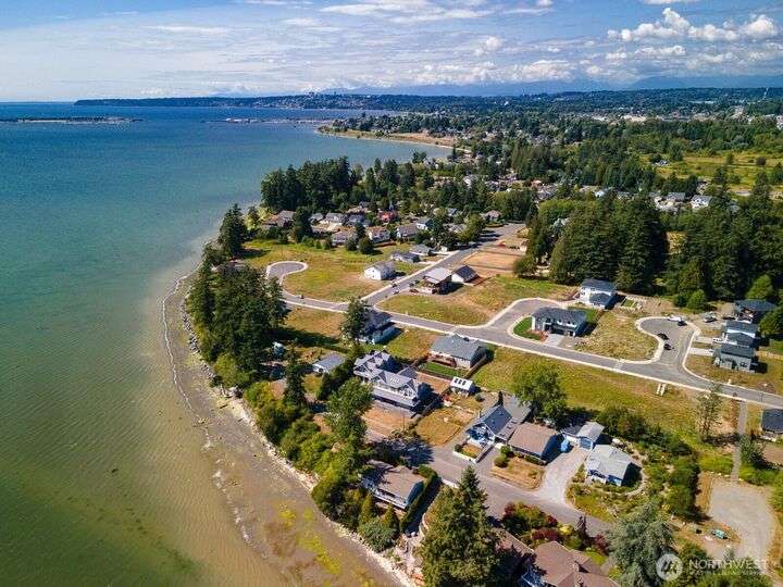 This newly constructed, single-level home is beautiful and located in a wonderful new development along the shores of Drayton Harbor, which features parks and walking trails throughout. The home is bright and airy, showcasing modern finishes and an excellent open floor plan. There is a butler's pantry adjacent to the kitchen, which opens to the living and dining areas. Near the front entry, there is an office, along with three bedrooms. The primary suite offers stunning saltwater views, and its bathroom features a sleek soaking tub, as well as a separate glass shower. The landscaped lot is level and fully fenced.