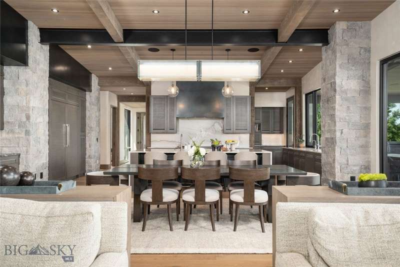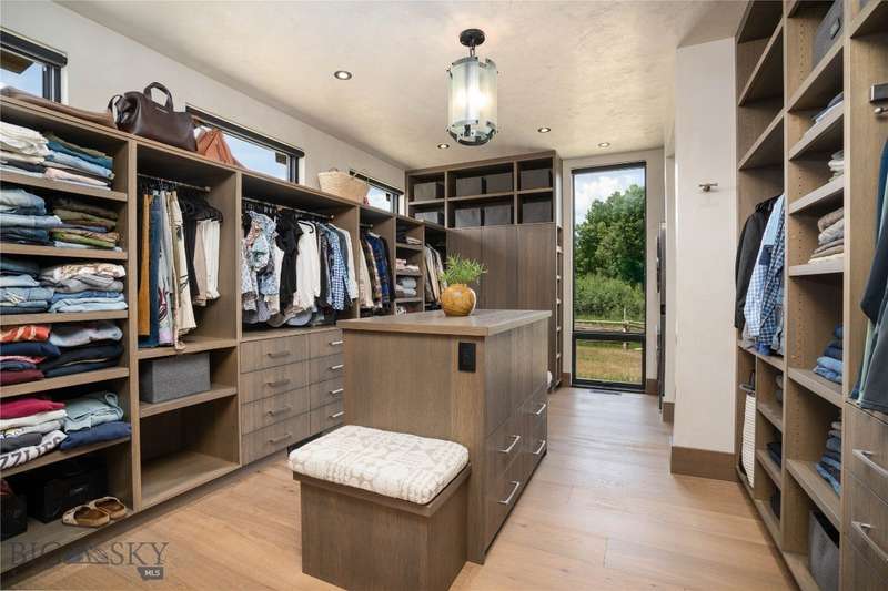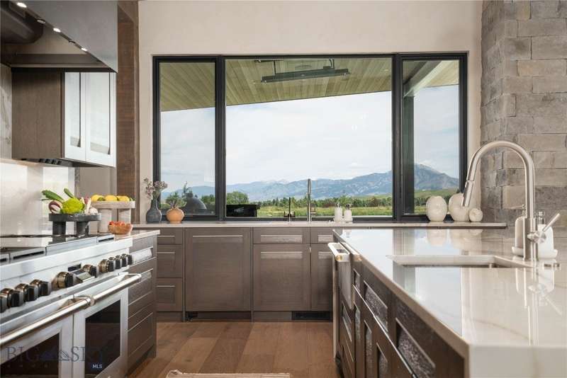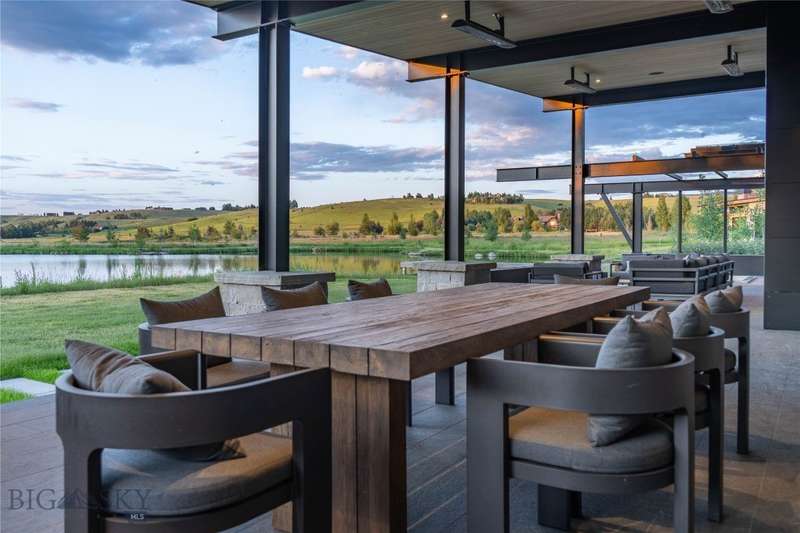 Welcome to Lightfell-Where light, land and water meet and life slows down. This premier Montana estate offers the perfect fusion of functional, modern luxury and a deep connection with the 20 acres of land located just 10 minutes from downtown Bozeman. Completed in 2024 by Centre Sky Architecture and Bridger Builders, this remarkable property includes a 5,655 SF main residence, a 1,990 SF guest home (totaling over 7,600 SF living space) and a 5,300 SF shop and Sportsman's Lounge-crafted for elevated everyday living and effortless entertaining. Every detail of the main home has been meticulously designed, from floor-to-ceiling windows framing panoramic views of four mountain ranges that surround the valley to the tranquil sightlines over your private 3-acre, stocked pond. Enjoy seamless indoor-outdoor living with heated patios, a sunken hot tub, outdoor gas fireplace, built-in grills, and beautifully manicured lawn and landscaping. Inside, the 3-bedroom main home features a sanctuary primary suite with vaulted ceilings, fireplace, spa-inspired bath with soaking tub and tile shower, and a generous walk-in closet complete with island and private laundry. An open-concept Great Room with temp-controlled wine gallery, home gym, two additional ensuite bedrooms and fenced raised garden beds round out this thoughtfully curated residence. The 4-bedroom guest home is ideal for hosting, offering two identical wings-each with a spacious large bedroom and bunk room-joined by a comfortable central living area. Guests can enjoy privacy without sacrificing connection. The 5,300 SF heated shop is a dream setup for Montana's outdoor lifestyle. Two pull-through bays including one with 14'x15' doors and an additional door to accommodate RVs, toys, and gear. Inside, the Sportsman's Lounge provides a rustic gathering space with kitchenette, gas stove, and built-in safe. Additional amenities include a dog wash station, washer/dryer, and an upper level game room with billiards, foosball, and shuffleboard completed by a rooftop deck offering sweeping views of the Bridgers-perfect for summer sunsets or starry nights. This rare offering delivers privacy, space, and five-star living in one of Bozeman's most exclusive neighborhoods with abundant wildlife and Bozeman Creek access.
