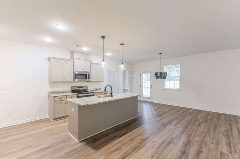 Nice flat lot only 1 step in for this beautiful and Affordable brand new ranch home with a flawless open concept floor plan. Extra cabinets in the stylish kitchen with large island granite tops and ss appliances. Owner suite include dual sink vanity shower and garden tub covered back porch with privacy fence all landscape and sprinklers NO HOA great neighborhood close to everything. BIG private lot