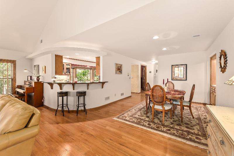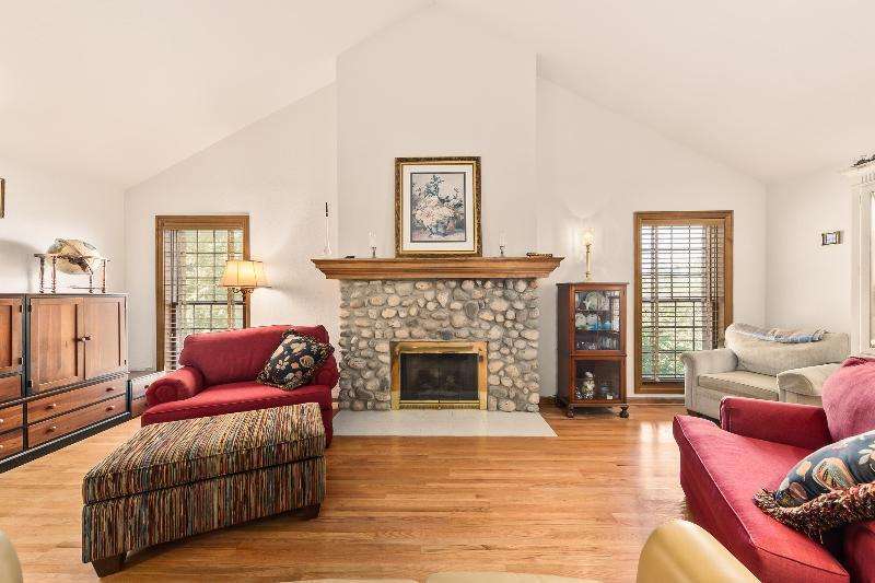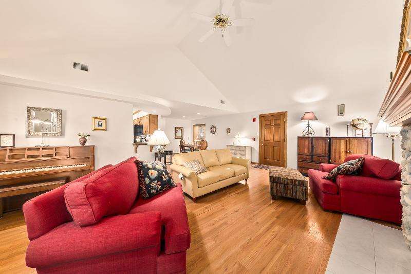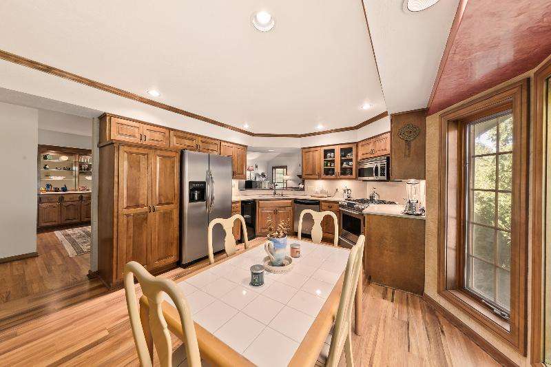 Welcome home to this beautifully maintained 3 bdrm, 2 full bath upper unit condo. Walk into a spacious open concept living/dining room and kitchen offering the perfect blend of comfort and convenience. This home features HWF and stunning vaulted ceilings throughout. The kitchen comes complete with a breakfast bar, quartz countertops and stainless-steel appliances, including a wine cooler! Generous size primary suite boasting huge WIC and en suite with jetted tub and separate shower. Other features include in-unit laundry, California closets, attached 2 car garage, private deck and an extra-large storage room in the basement. Steps away from Downtown Elm Grove, shopping, restaurants and walking trails. Pets welcome. Truly a must-see!