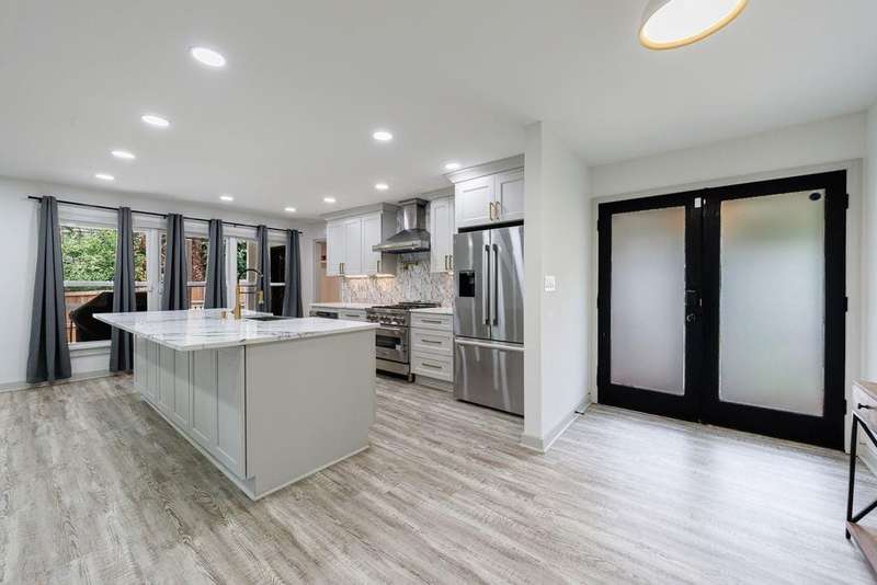 AMAZING NEW PRICE!!! Totally renovated in 2022 with all new systems, appliances, & electrical!!! Close-in location and in one of Dunwoodys top rated school districts!!! This home is in a sought-after Dunwoody neighborhood, just .25 mile from Ashford Dunwoody Road and one mile from Perimeter Mall, I-285, GA-400, dozens of shops, restaurants, and Publix. A very walkable quiet neighborhood with sidewalks all along Valley View Road from Ashford Dunwoody Road. Welcome home to a beautifully transformed renovated Dunwoody home no expense was spared in modernizing every aspect. It is as stunning as it is functional with a modern design and a thoughtfully imagined floor plan with 5 Bedrooms and 3 Full Baths. This completely open concept layout features an amazing kitchen with an expansive quartz island, incredible workmanship on the tile backsplash and gold fixtures and handles, new vent hood and all top of the line stainless-steel appliances including four burner gas oven range, Bosch refrigerator, Bosch dishwasher, in cabinet microwave & washer/dryer. The spacious family room features a stunning geometric fireplace built into the wall and space for a large dining table. Enjoy outdoor living on the large side deck with ceiling fan overlooking a private fenced backyard perfect for entertaining. Master is on the main with a Master bath that has a floor to wall dramatic tile backsplash, rainfall shower head and two vanities. Two additional bedrooms on the main with a full bath, elegant tile/shower with wall massage shower heads. The daylight lower level has exterior access to the private fenced backyard with two bedrooms facing the backyard and a full bathroom, a great in-law suite, perfect play area for children, or a great place for an in-home gym! Screens are on all windows on both floors. A great home for entertaining as well as offering separate spaces for different activities. Renovated in 2022 and purchased by current sellers in early 2023, this home features over $40K in upgrades by the current sellers including a whole house Generac generator, new privacy fence, upgraded electrical with surge protection and grounding, improved laundry ventilation, and enhanced backyard drainage. Dont miss this opportunity to call this wonderful property your new home!