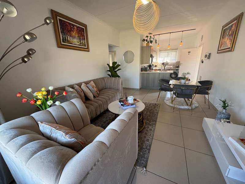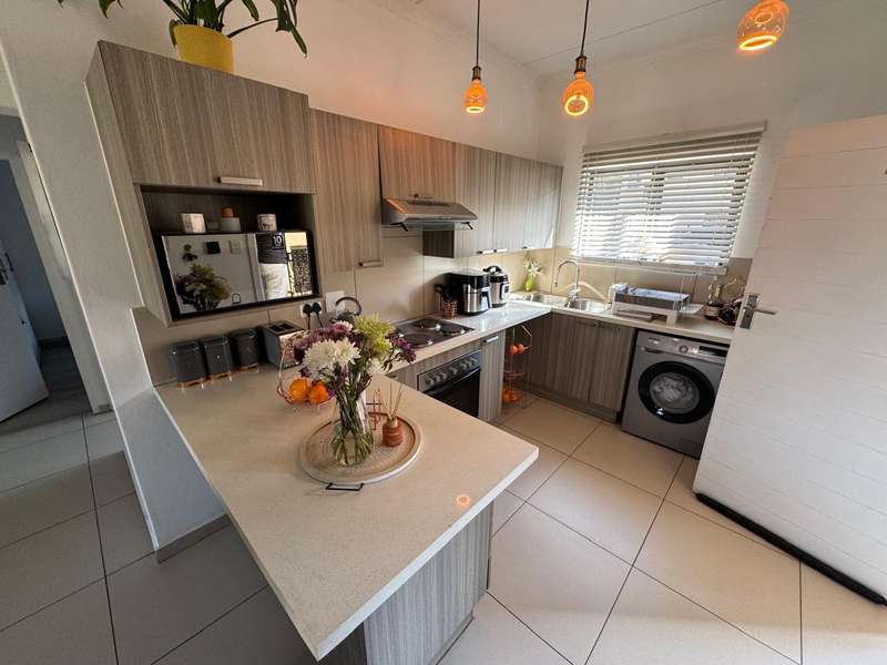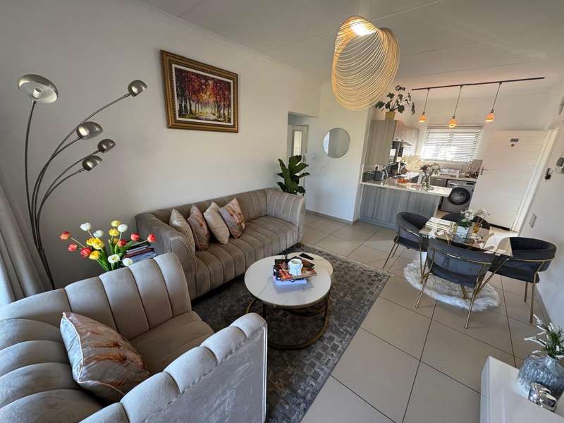 Experience luxurious estate living in this modern 2-bedroom, 1-bathroom apartment available to let in the sought-after Royal Reef West. Designed with comfort and style in mind, this beautifully finished unit is perfect for professionals or small families seeking security, convenience, and a premium lifestyle. The apartment boasts an open-plan layout with a spacious lounge and dining area flowing seamlessly into a contemporary kitchen. Fitted with sleek granite countertops, ample cupboard space, and room for all essential appliances, the kitchen is both functional and stylish. The two bedrooms are generously sized, featuring built-in cupboards and large windows that allow for plenty of natural light. The bathroom offers a modern, high-end finish with a large walk-in shower and elegant fixtures, creating a comfortable and refreshing space. Situated within a well-maintained and secure estate, residents of Royal Reef West enjoy access to top-tier amenities including a sparkling communal swimming pool, landscaped gardens, and 24-hour security with access control. The estate is conveniently located close to major highways, shopping centres, schools, and medical facilities — making daily life effortless and enjoyable. This apartment is perfect for tenants looking for quality, security, and a lock-up-and-go lifestyle. Water and electricity are prepaid, and the unit comes with a dedicated parking bay. Don’t miss this opportunity to rent in one of the area’s most prestigious developments. Contact us today to schedule a viewing and make Royal Reef West your new home.