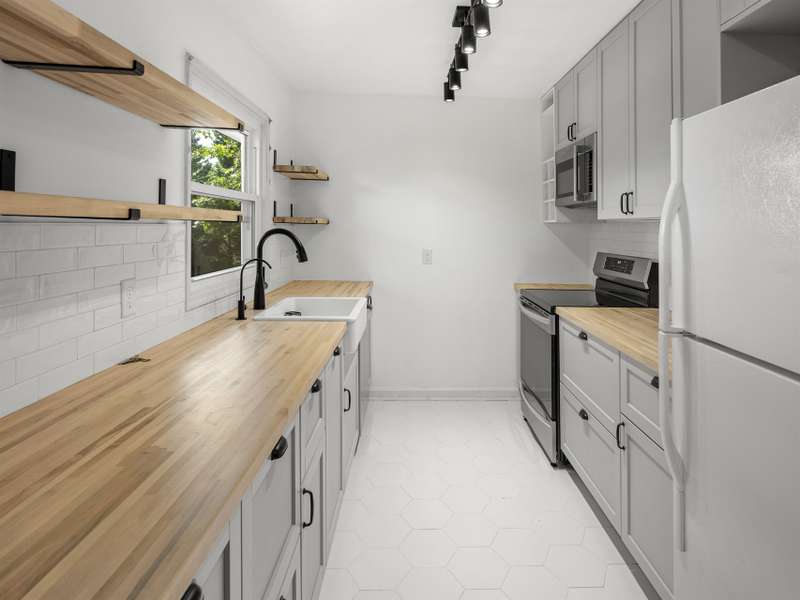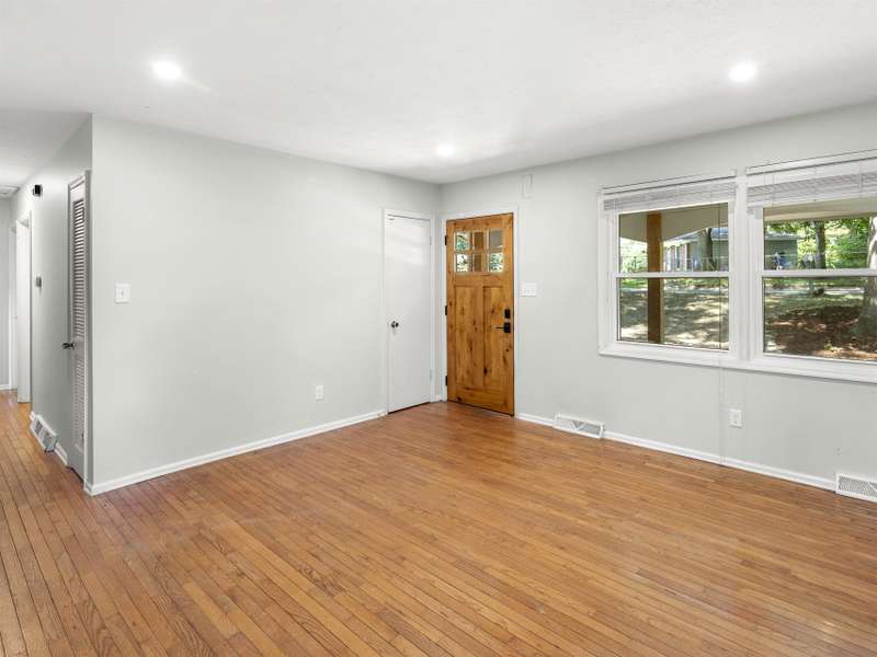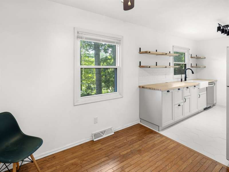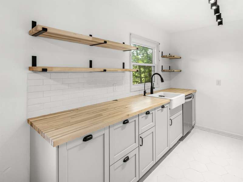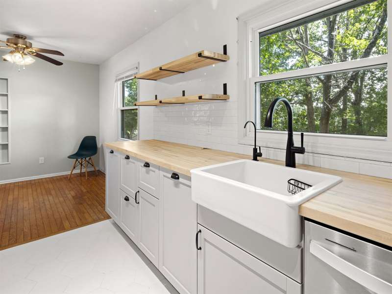 Affordable and move-in ready 3 bedroom, 1.5 bathroom ranch style home on a large, partially fenced lot in 28806. The recently updated kitchen features: newer cabinets, farm sink, butcher block countertops and open shelving. Hardwood floors throughout most of the home. Primary bedroom has an en-suite half bathroom. Tall crawl space offers additional storage. In 2022 new HVAC was installed, all windows replaced and electrical was updated. Roof and gutters less than 10 years old. Bathrooms have been updated as well. The .38 acre lot in RS8 zoning should have the potential to subdivide, buyer to verify. Only 10 minutes to Downtown and West Asheville.