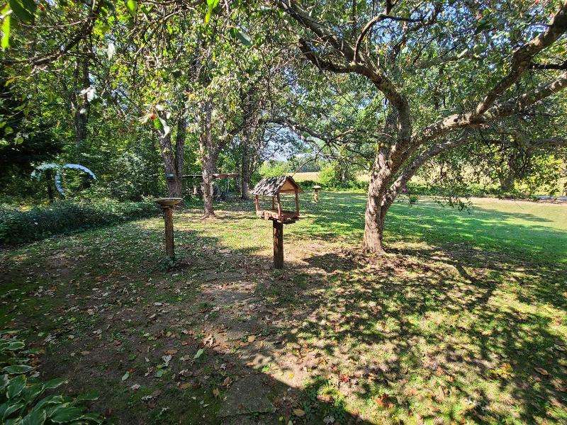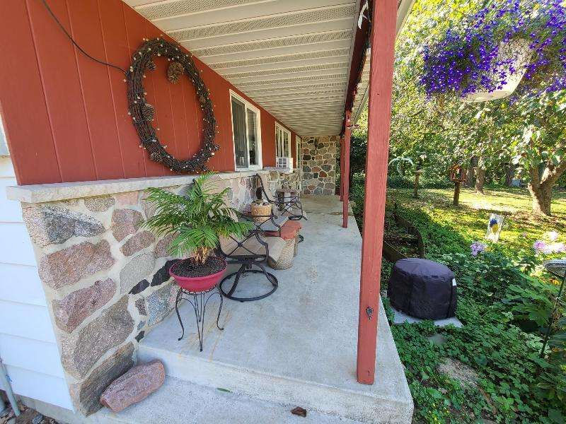 Escape to this country ranch home on 5 acres. Open concept floorplan. 2 Bedrooms. 2 Baths. Kitchen has breakfast bar, pantry & includes appliances. Dining Area. Spacious Living room features split field stone surround, wood burning fireplace insert, big windows, perfect for bird watching. Convenient 1st floor laundry. Full, walk-out Basement has Guest Room, 2nd Bath & Wood Pellet Stove to keep you warm & cozy this winter. Deck. Hot tub. Attached 3 Car Garage. Shelter Logic 12'x20' Storage Shed. Garden Shed. Relax out on the covered front porch overlooking front yard. Explore & wander beautiful groomed trails through the woods. Wildlife galore including deer, fox, turkeys & wild birds. Good hunting! Enjoy all that rural living has to offer. Come home to the country!