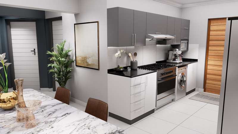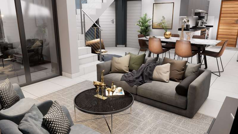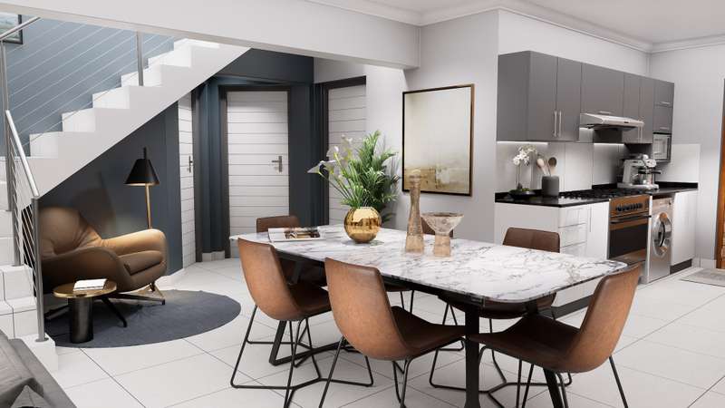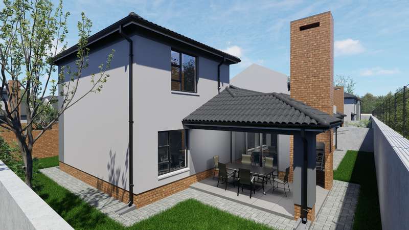 Semi-Double-Storey Comfort & Versatility The clever split-level design offers privacy and functionality: Upstairs: A luxurious main bedroom with a full ensuite bathroom featuring a double vanity, plus a versatile study or pajama lounge—ideal for remote work or a peaceful retreat. Downstairs: Two generously sized bedrooms share a full bathroom, creating a perfect setup for families. Light-Filled Living & Entertaining Open-plan lounge and dining area flows effortlessly to a covered patio with a built-in braai, perfect for all-season entertaining. Stylish kitchen with Quartz countertops and a premium 4-burner gas stove, designed with everyday convenience in mind. This unit is with double carport 1.8m high boundary wall with pedestrian gate for added security and privacy Family-Centric Estate Features Landscaped communal gardens Children’s play area for safe outdoor fun Energy-Efficient & Cost-Inclusive 200L solar flat panel split system for energy-saving hot water All-inclusive pricing – no hidden costs: NHBRC registration VAT Attorney & admin fees Interim bond interest Water & electricity connection fees & deposits Custom Finishes – Tailored to You Select from a curated range of finishes for: Floor tiles, kitchen cupboards, splashbacks, countertops Built-in bedroom cupboards, bathroom wall tiles, and vanities We're thrilled to announce that construction is officially underway on the show house! The groundwork has commenced, marking the first step toward bringing this beautiful vision to life. Exciting progress on site! ? Estate roads are now complete, making access smooth and convenient. Inside the show house, tiling has been completed, and bedroom cupboards are fitted. Work is currently underway on the kitchen installation, bringing us closer to the final finish. Stay tuned for more updates as we move towards showcasing the completed unit!