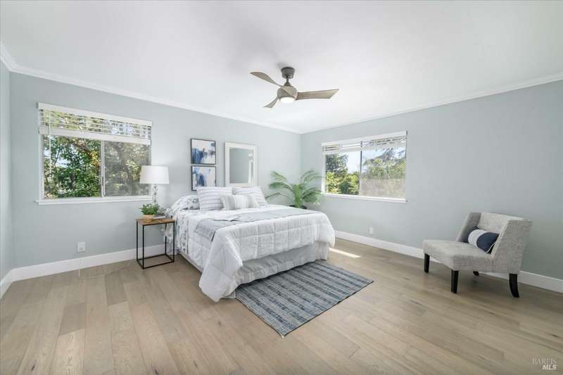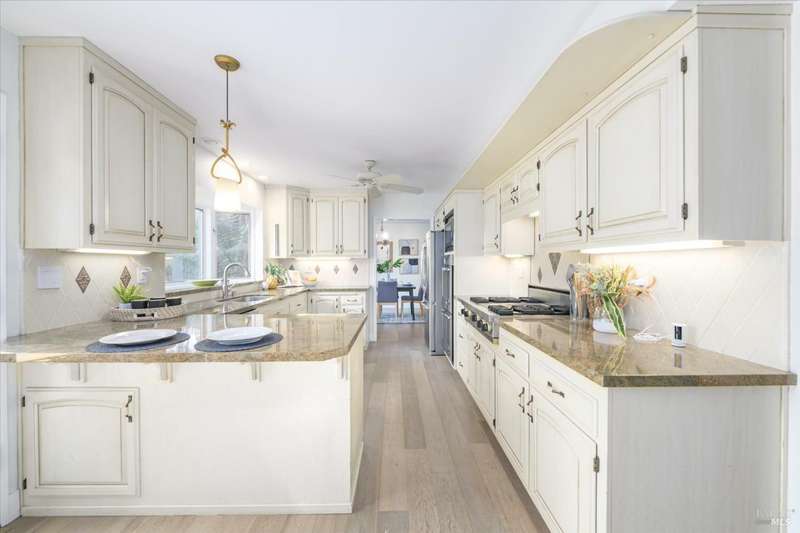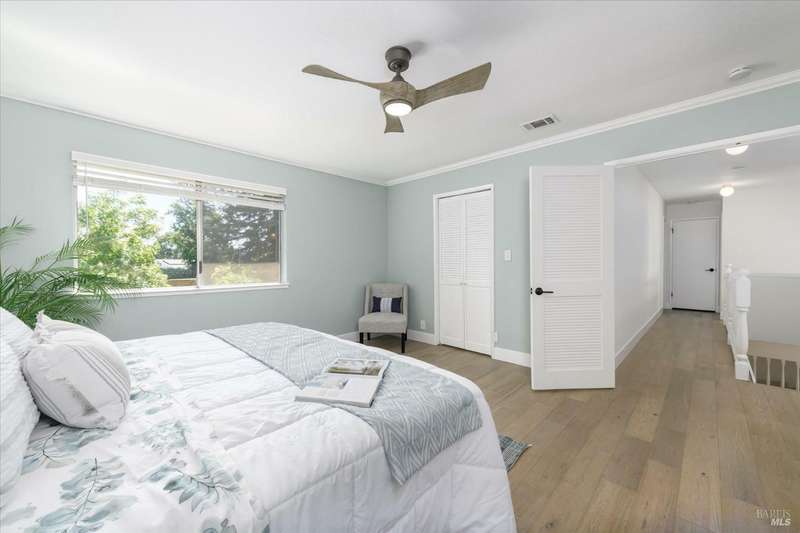 Nestled on nearly one-third of an acre and surrounded by lush, low-maintenance landscaping, this stylish contemporary home is a true Napa gem. Located just steps from two city parks, the property is designed for both relaxation and recreation. Step into your own backyard retreat featuring a private 5-hole putting green, raised garden beds, and a full bocce ball courtperfect for entertaining under the stars. The outdoor kitchen includes bar seating and patio seamless indoor-outdoor living. The expansive 240 sq. ft. detached studio is ideal for a home office, fitness space, workshop, or even future ADU (architect-drawn plans included with the sale). Inside, enjoy the elegance of new wide-plank oak hardwood floors and a freshly painted interior.The reimagined primary suite includes a custom-built, dream-worthy walk-in closet (formerly a 4th bedroom), while a newly added pantry and smart home upgrades add modern convenience throughout. Additional highlights include wine fridge in garage.