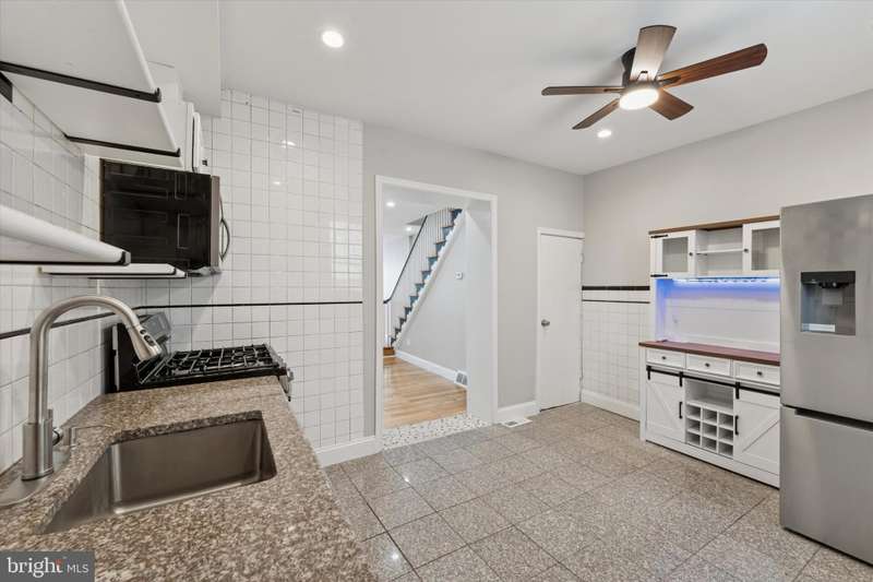 This move-in ready rowhome with key updates is in a fantastic South Philly location. Warm flooring complemented by the perfect shade of greige walls and recessed LED lighting run throughout, combined with lots of lovely natural light to create a bright, airy and spacious vibe. The open living space with maple floors and plenty of room for living and dining gets great eastern light from an oversized front window. The super charming staircase has its original banister intact, and a contrasting navy blue and white paint palette highlights its sweet decorative elements. The homes historic charm continues in the kitchen, where the vintage black and white full-wall tile was preserved. Theres good storage via the freshly painted white cabinets, open shelving and a freestanding storage and workspace combo. The stainless steel undermount sink with pulldown gooseneck faucet and appliances are anything but vintagetheres a Bosch French door fridge, Samsung five-burner range with convection oven and a Whirlpool over-range microwave that vents out. The rear patio offers plenty of room for a grill and bistro set or container kitchen garden, and down in the basement theres ample space for storage plus laundry hookups conveniently located right near the bottom of the stairs. Upstairs theres new luxury vinyl flooring running throughout the three sunny bedrooms.The good-sized rear bedroom has a west-facing back window, while the middle true bedroom opens to a super private side balcony. Theres a large hall closet and full bath with skylight and full-wall ceramic tile surround for the tub with glass doors and rainhead faucet. The largest bedroom in front has a picture window facing the architecturally significant Bok buildingdid we mention that this home is steps away from that community hub, with over 200 locally owned businesses, shops, restaurants and of course, that Instagram famous rooftop bar? Plus with Snyder Ave two blocks south, Passyunk Ave four blocks east and Dickinson Square Park just beyond to the west, youve got the best of the rest of South Philly within easy reach.