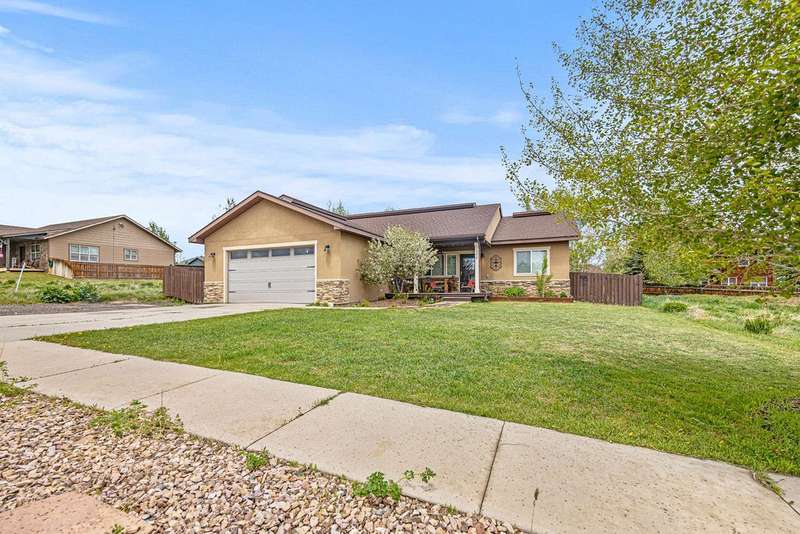 Simply Perfect in Lake Village. Welcome to 352 Lake View Road—where comfort meets charm in the heart of Hayden’s sought-after Lake Village neighborhood. Just a half block from the community park, this beautifully upgraded ranch-style home offers three bedrooms, two bathrooms, and 1,610 square feet of thoughtfully designed living space. Step inside to an inviting open floor plan enhanced by warm wood floors, vaulted ceilings, and stylish new light fixtures. The kitchen features durable Corian countertops, perfect for both daily living and entertaining. Fresh paint throughout, built-in shelving, and a true primary suite with a spacious walk-in closet elevate the home’s functionality and style. Enjoy a morning coffee on the covered front porch or host unforgettable gatherings in the fully fenced backyard, complete with a large deck, raised garden beds, and a complete sprinkler system. Set in a friendly, walkable neighborhood just up the hill from the new school, Hayden Center, walking paths, community pond, and more—this home offers low-maintenance living with a lifestyle-rich location and an easy commute to Steamboat Springs. Don’t miss your chance to plant roots in this move-in-ready gem.