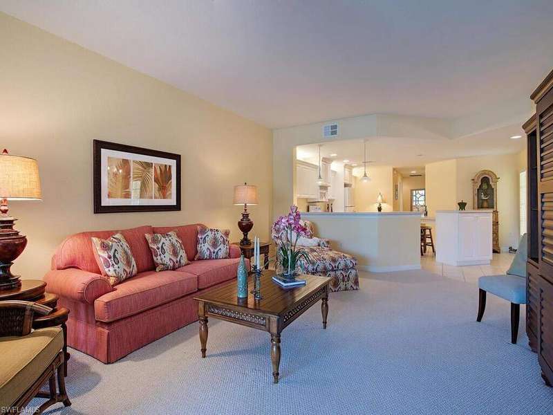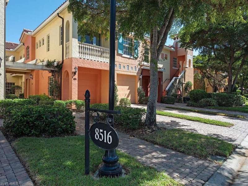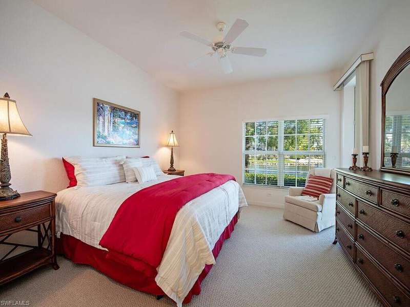 Enjoy peaceful WATER VIEWS from this beautifully maintained first-floor COACH HOME, featuring 2 Bedrooms plus a Den/Flex space, 2 Baths, and a single-car GARAGE with ample storage. The open and spacious split-bedroom layout offers over 1,600 square feet of comfortable living, ideal for both relaxation and entertaining. Move right in-this residence is being sold TURNKEY and ready for immediate enjoyment. RAPALLO is a 24 hour Guard Gated resort-style community, residents enjoy an impressive array of amenities, including five Har-Tru tennis courts with a pro shop, two free-form pools, a multi-lane lap pool, spa, fitness center, yoga/aerobics studio, cafe, covered patio seating, sauna, massage services, bocce courts, a fishing pier, scenic boardwalk, and more. Coconut Point, an upscale outdoor shopping district is just minutes away, with restaurants, fashion, and entertainment. The sugar sand BEACHES of the Gulf of Mexico are within an easy drive, and SWFL International Airport is just 20 minutes away. This pet friendly community offer the ideal Southwest Florida lifestyle.