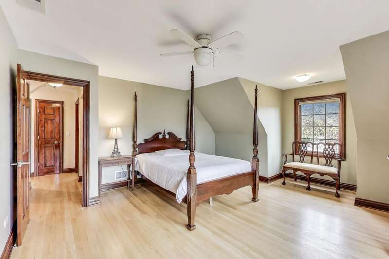 This well-maintained 2-story home offers 5 bedrooms, 3 full bathrooms, and over 3,000 square feet of living space, including a 1,450 square foot finished basement. The primary suite features a cozy fireplace, a walk-in closet, and a luxurious steam shower. Utilize the 5th bedroom as an office, yoga studio, or playroom; the possibilities are endless. The open-concept kitchen flows seamlessly into the dining area and family room, which also includes a fireplace. French doors open to a large backyard deck, perfect for entertaining. Throughout the home, you'll find numerous upgrades such as hardwood floors, solid wood interior doors, Pella windows, and updated kitchen appliances. Convenience is key with laundry facilities located on both the second floor and in the basement. The home's systems have been thoughtfully updated: the lower level furnace and AC were replaced in 2020, while the upper level units were replaced in 2023. A 75-gallon water heater was installed in 2021, and both the plumbing and electrical systems were fully updated in 2005. Move-in ready and offering space, comfort, and quality upgrades-schedule your tour today!