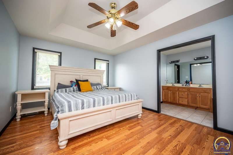 5 bedroom, 3 bath ranch home with a three car garage in Sherwood Park. Granite in the kitchen with Custom Woods cabinets and a breakfast bar. Real hardwood floors, fireplace in the living room, and main floor laundry. Primary bedroom features a large walk-in closet, plus a double vanity and jet tub in the primary bath. Finished basement with a wet bar, family room, and rec room. Basement bedrooms feature nice built-ins and window seats! Fenced yard with a sprinkler system, no special taxes, roof replaced in 2018, newer AC, and water heater was just replaced! Current owners have an assumable VA loan at 2.6%!