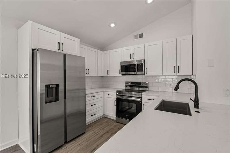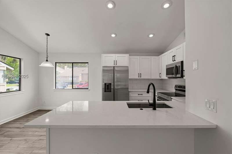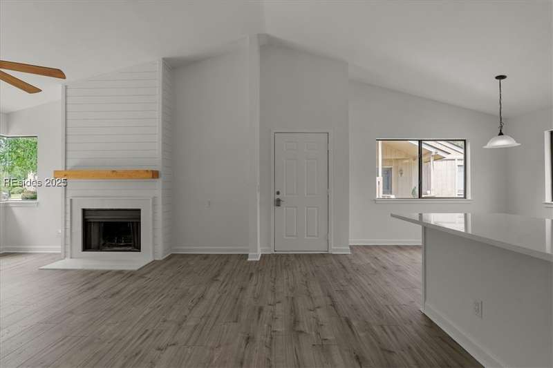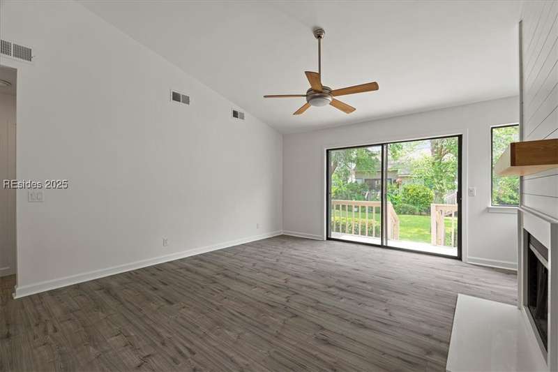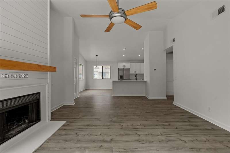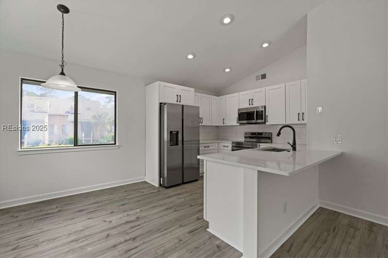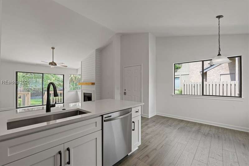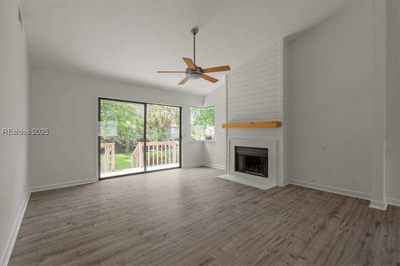 Completely renovated end unit with beautiful lagoon view! New white shaker cabinets with quartz countertops and stainless-steel appliances. Open kitchen with a large living room and fireplace. New LVP floors throughout. Updated bathroom with huge walk-in shower and new double vanity. New Duct work. All new paint. This is a 10 and as turnkey as it gets. Community pool, tennis, playground and fitness center. Great North end location. Don't miss this villa.