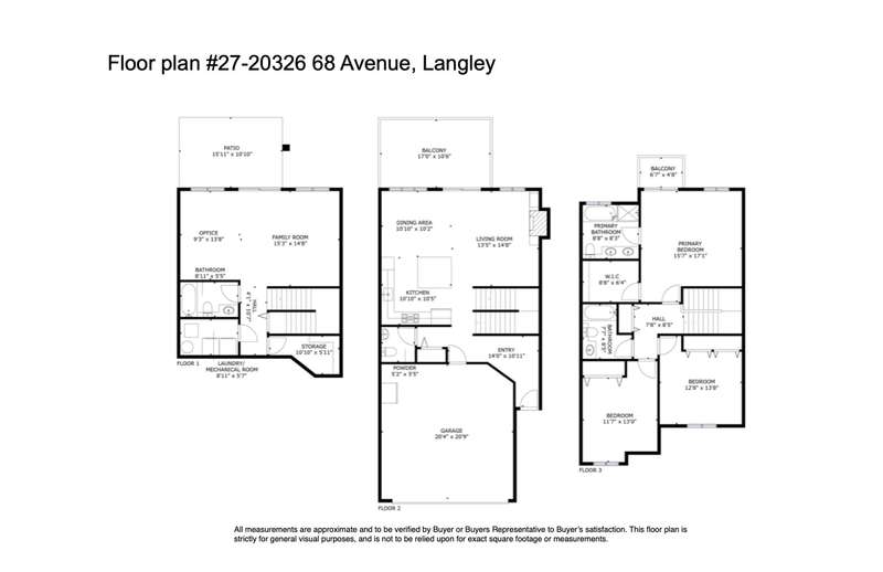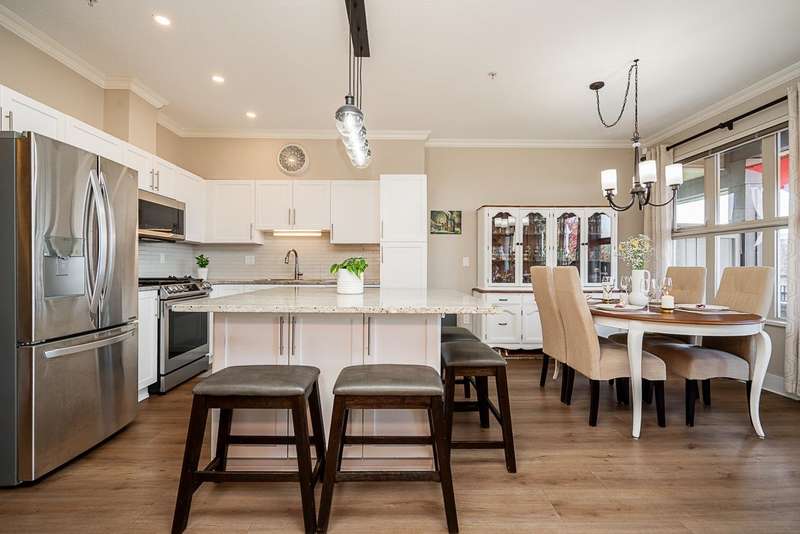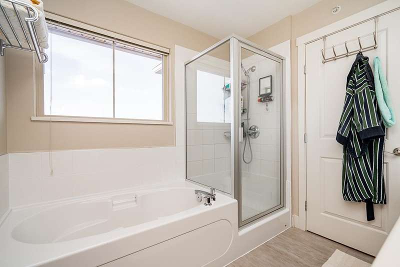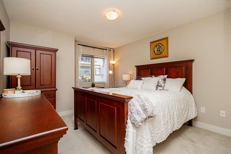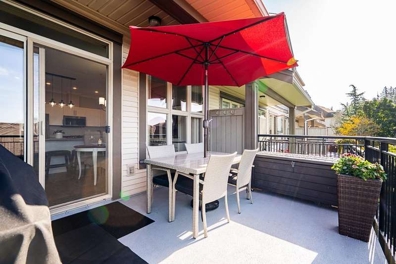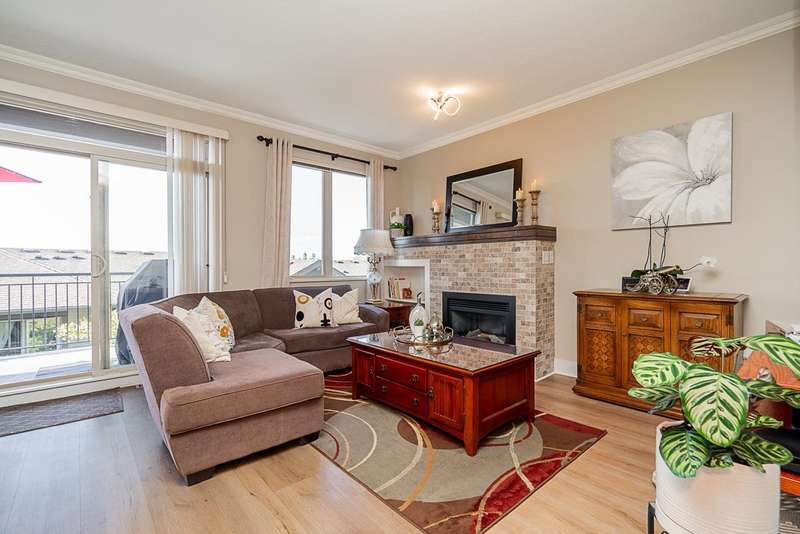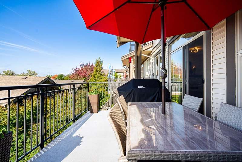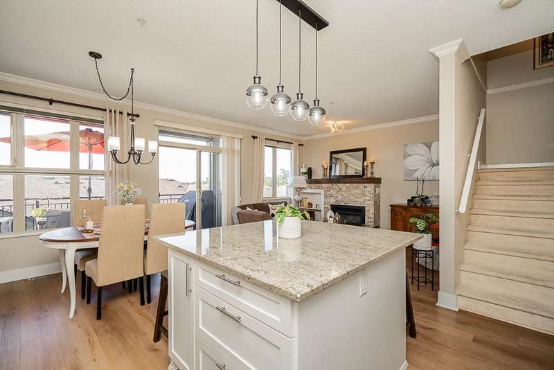 Offering over 2,100 sq ft of bright & comfortable living space, this townhome truly feels like a detached home! The open main floor features a stylish kitchen with granite countertops, gas stove, large island, and ample storage — ideal for family gatherings and entertaining. The cozy living area with a gas fireplace opens to a sunny balcony with views of downtown Langley. Upstairs, the spacious primary suite offers a walk-in closet, double sinks, soaker tub and a private patio. The lower level provides lots of flexibility with a full bath and rec room or 4th bedroom, with walk-out access to a private fenced yard and patio. Updates include light laminate flooring and a new washer/dryer. Close to schools, shops, and transit, this home is move-in ready! Book your private showing today!